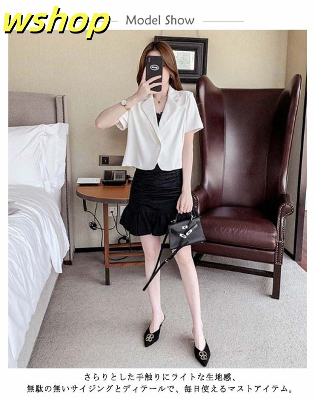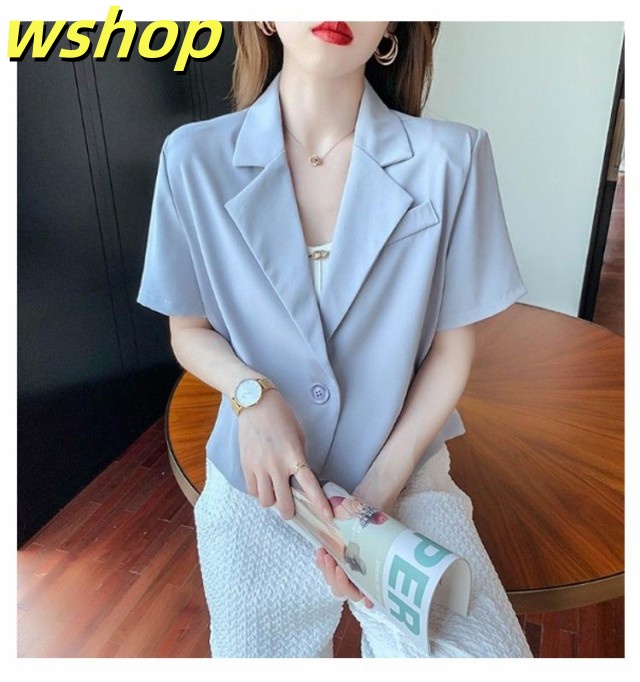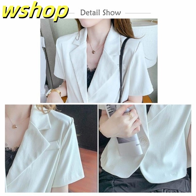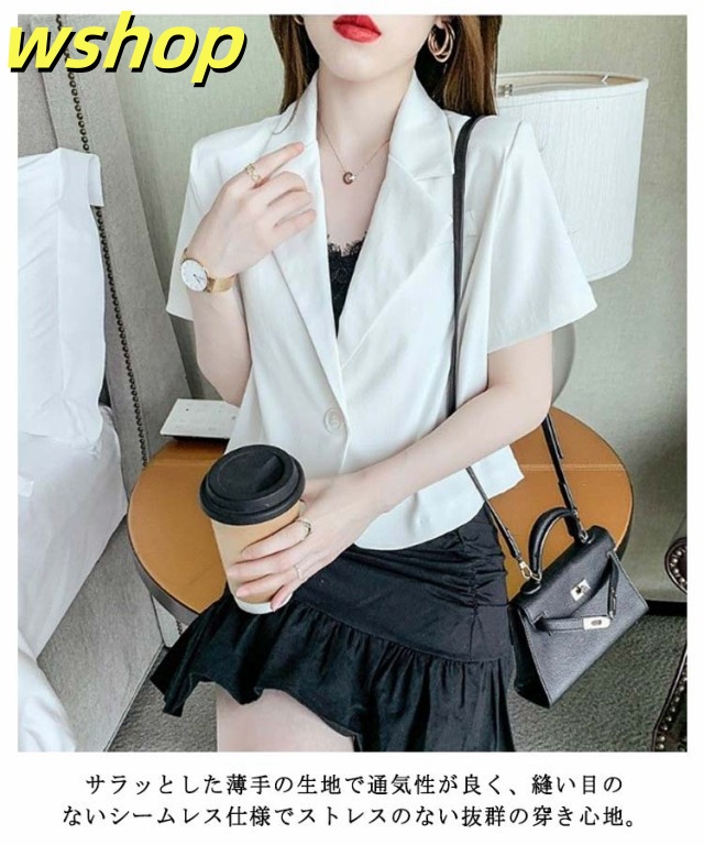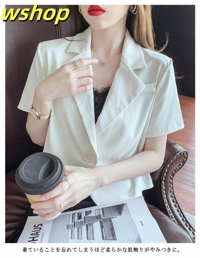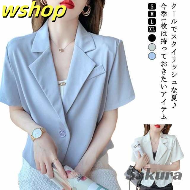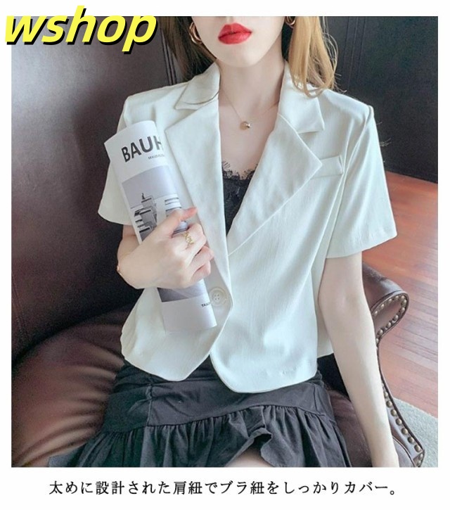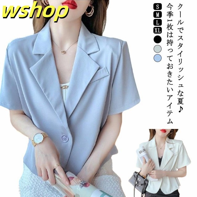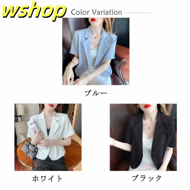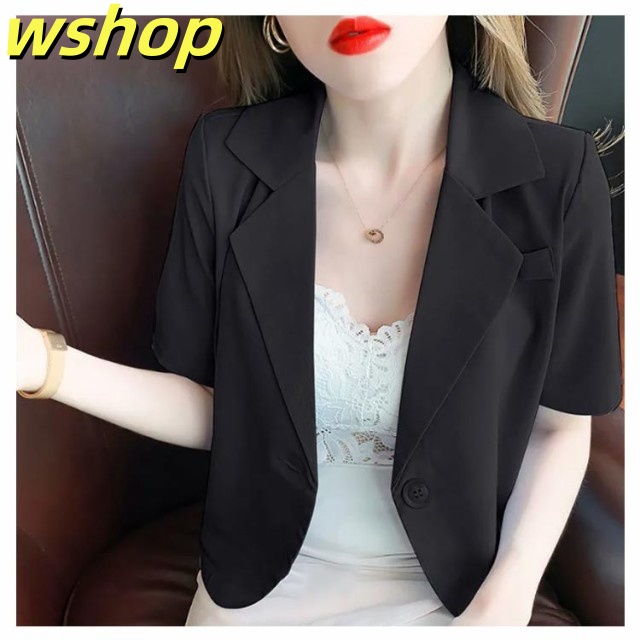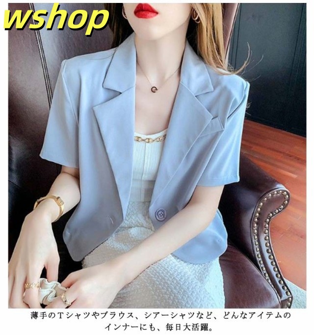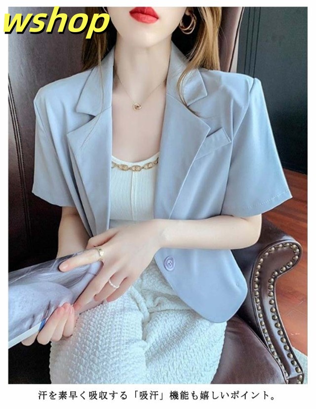 【wshop 】テーラードジャケット ショート丈 半袖 サマージャケット レディース 通勤 スーツジャケット 春夏 半袖ジャケット 夏 きれいめ 着痩せ 普段着 ジャケット 半袖ジャケット 通勤 オシャレ カジュアル 無地 韓国風 上品 お出かけ 結婚式 披露宴 ギフト 送料無料