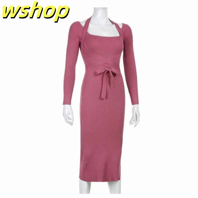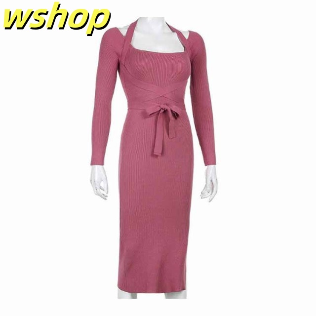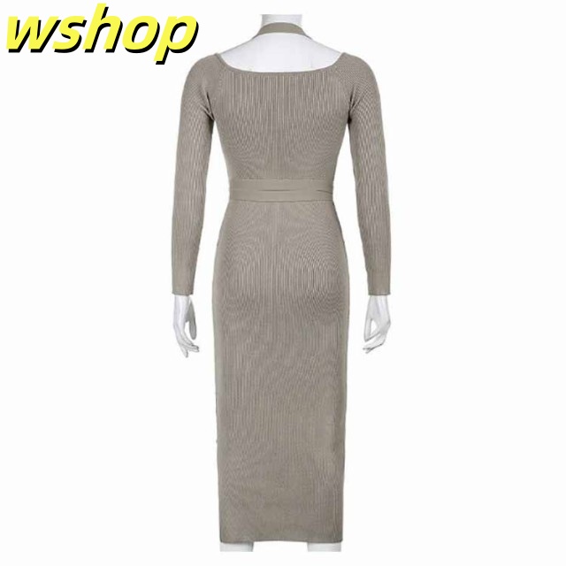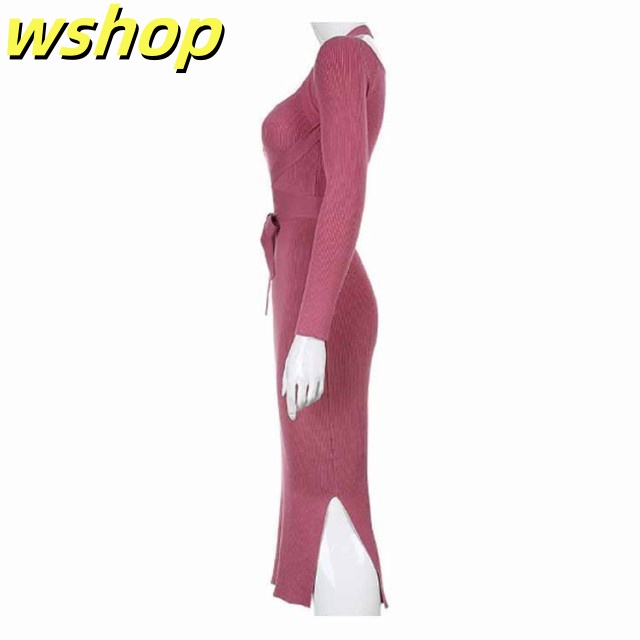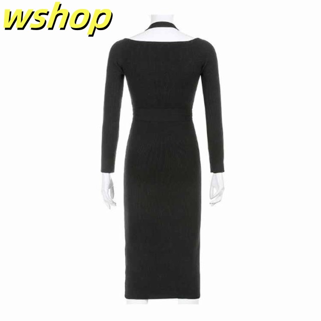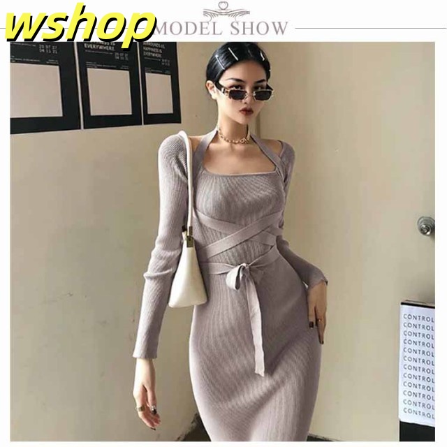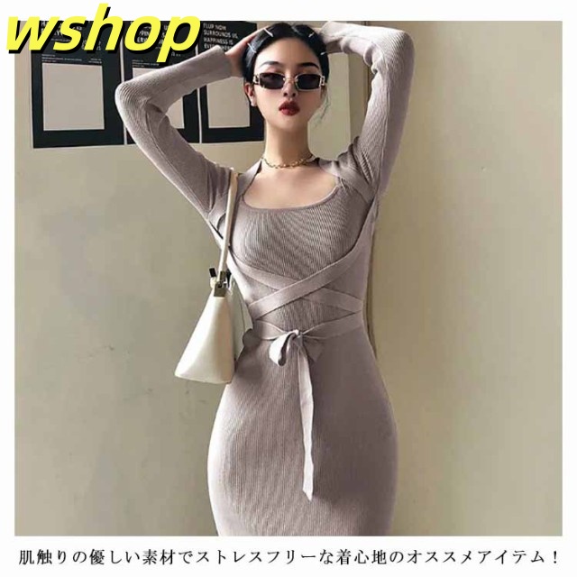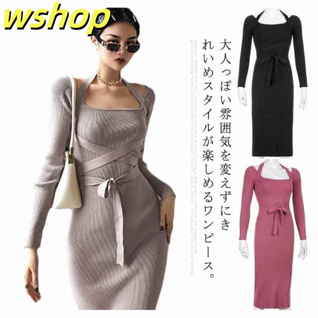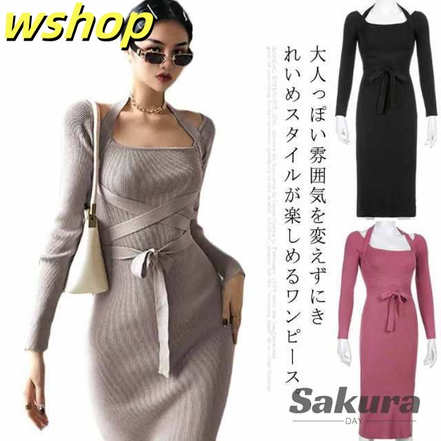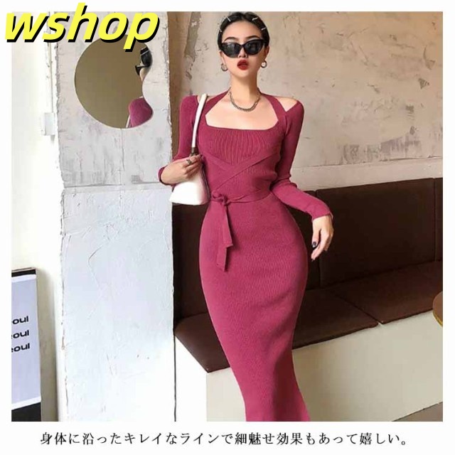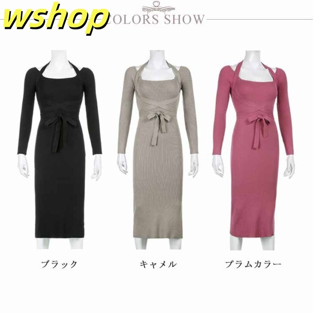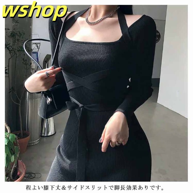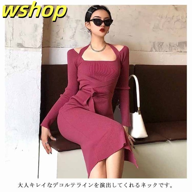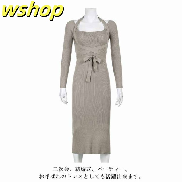 軽量仕様 SNS話題 パーティー 【wshop タイト 膝丈 スリム お呼ばれ シック きれいめ ひざ丈 秋冬 おしゃれ 上品 】ワンピース 大人 長袖 着痩せ サイドスリット ロングワンピース お嬢様 ニット 二次会 結婚式 送料無料 セクシー 春 リブニット 姫系ワンピース 送料無料