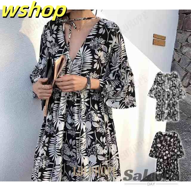 レビュー高評価商品 ギフトにも最適 SNS話題 送料無料 ワンピース 韓国ファッション カジュアル 即納OK リボン 10代 20代 おしゃれ 夏 秋 30代 】ボタニカル柄チュニック 【wshop 花 レディース トップス 春 送料無料実施中