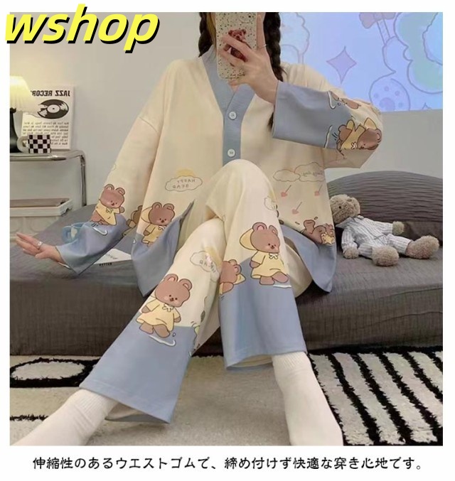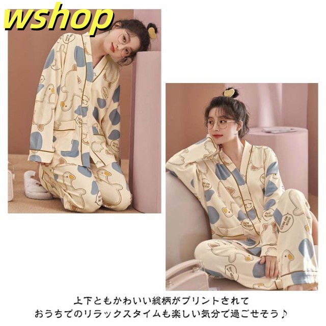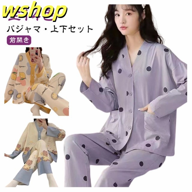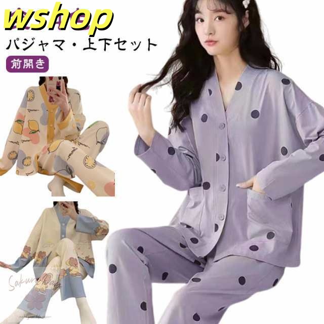 話題商品 ランキング常連 上下セット ロングパンツ 襟なし 可愛い 【wshop 哺乳 女性 】パジャマ ルームウェア 前開き 春夏秋冬 部屋着 おしゃれ 寝巻き ナイトウェア 長ズボン レディース Vネック 長袖 寝間着 婦人 授乳 セットアップ トップス 入院 送料無料