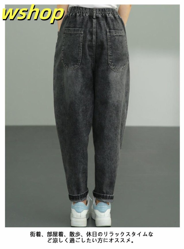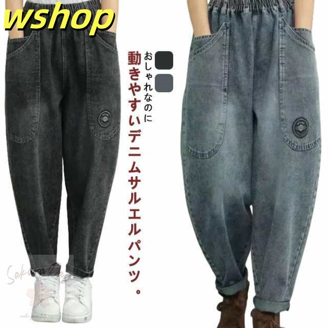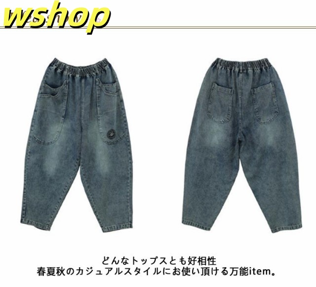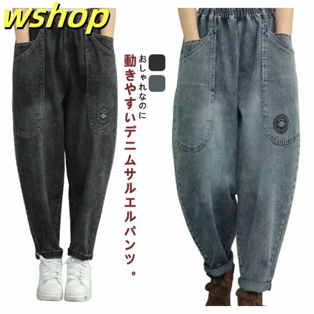 デニム デニム ワイド デニムパンツ サルエルパンツ ゆるパンツ ワイドパンツ レディース バルーン サルエル バルーンパンツ ワイド ウエストゴム アラジンパンツ 綿 コクーンパンツ