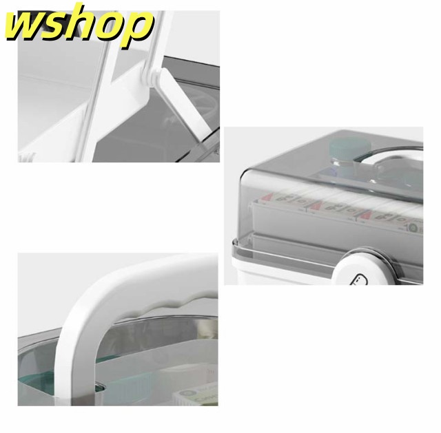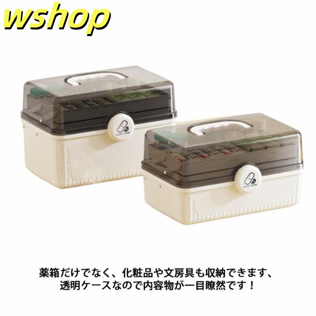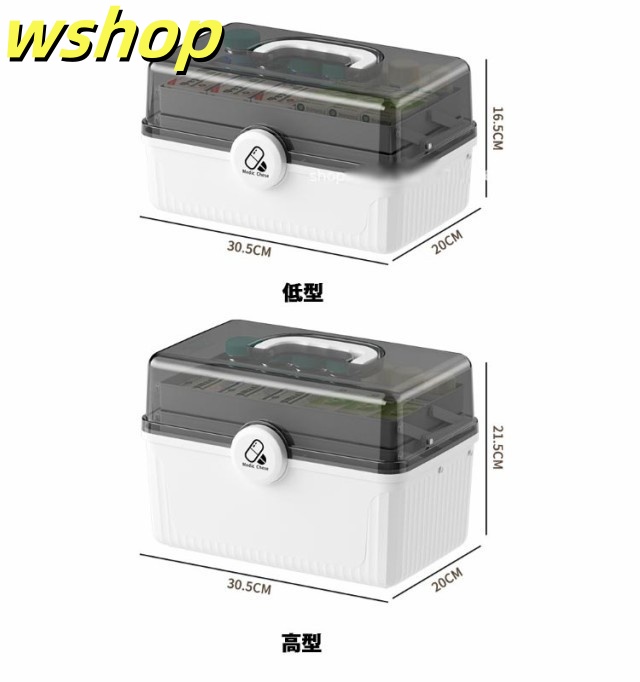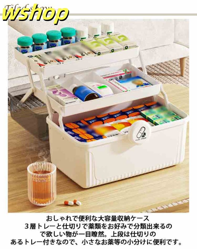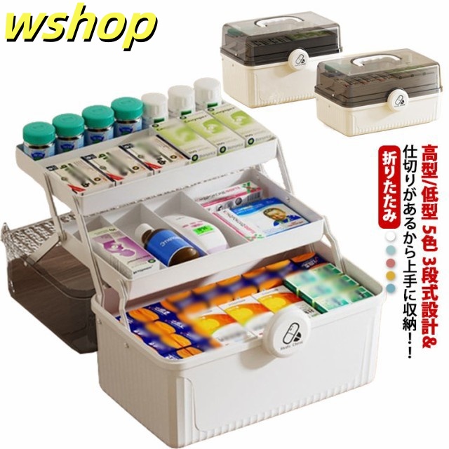 | 高型/低型 5色 3段式設計&仕切りがあるから上手に収納!! おしゃれで便利な大容量収納ケース ・軽量のPP素材で環境保護ができて耐久性もあります。長持ちで、防虫、防黴、防湿で、非常に耐久性がある。 ・3層トレーと仕切りで薬類をお好みで分類出来るので欲しい物が一目瞭然。 ・上段は仕切りのあるトレー付きなので、小さなお薬等の小分けに便利です。 ・下段には高さのある瓶やボトルもたっぷり収納できます。 ・フタが透明になっているため開けることなく中身がハッキリ見えます。 ・また、180度開けることができ、隠されたハンドルのデザインは移動や持ち運びが簡単で、万が一急な災害が起きた時でも、慌てることなく対応できます。 ・開閉部分には「回転ロック」を採用することで、薬を乾燥した環境に保つ、子供が薬を誤って食べるのを防ぐ。お子様のいるご家庭でも安心出来ます。 ・しっかり閉められるので持ち上げる際にフタが開いて中身が落ちる心配もありません。 ・薬箱だけでなく、化粧品や文房具も収納できます、透明ケースなので内容物が一目瞭然です! ・家族、病院、診療所、アウトドア、事務所など用に、常備薬をまとめてコンパクトに収納出来る救急箱です。 | |