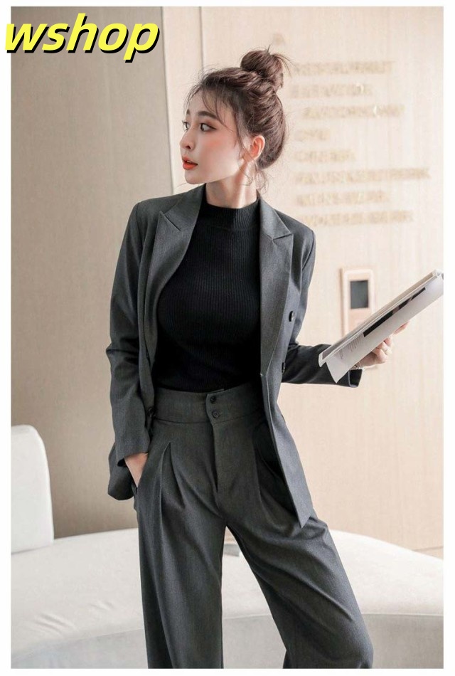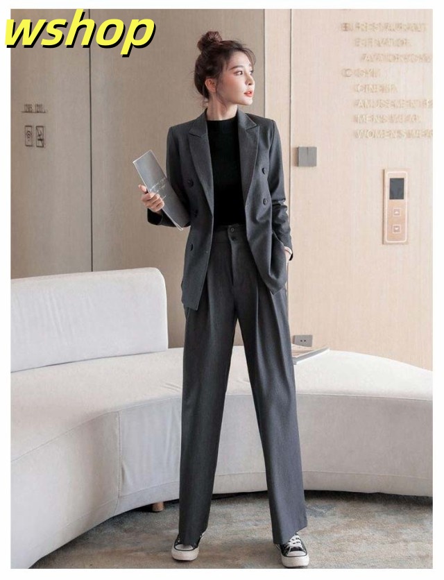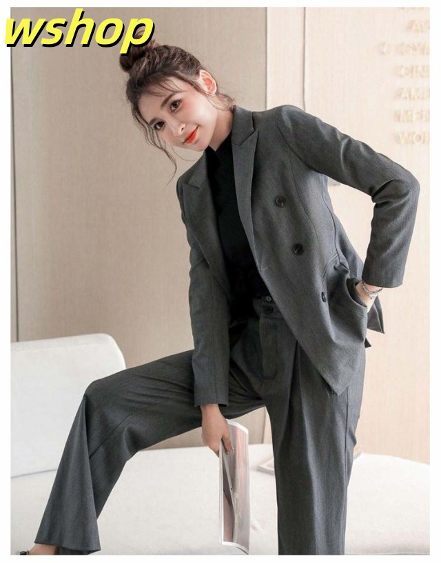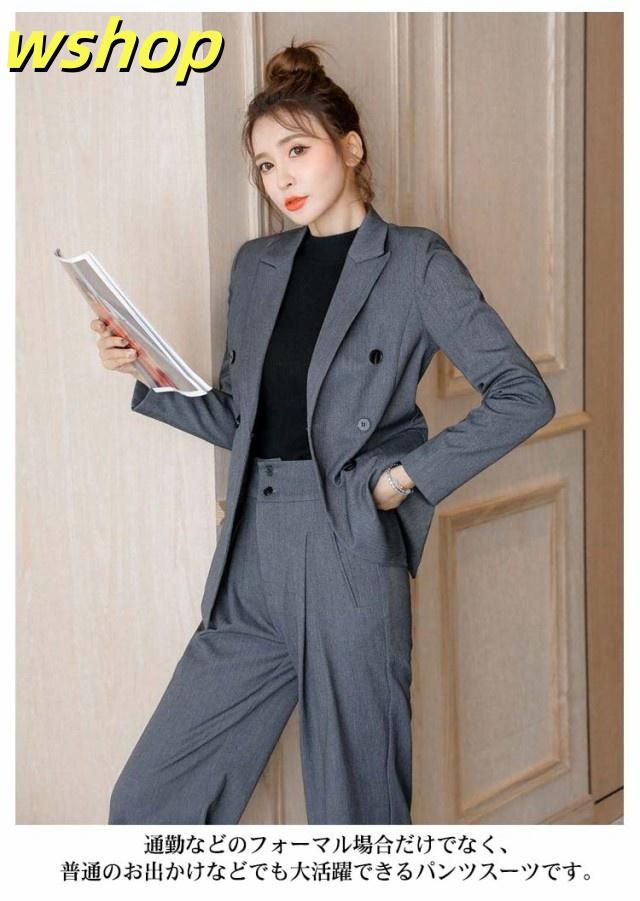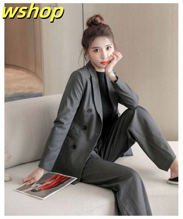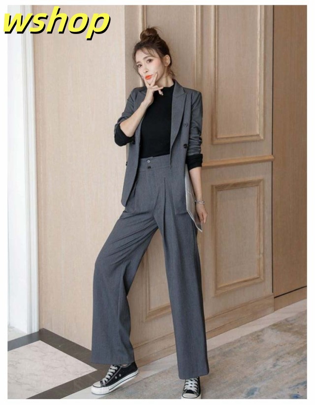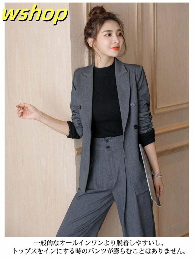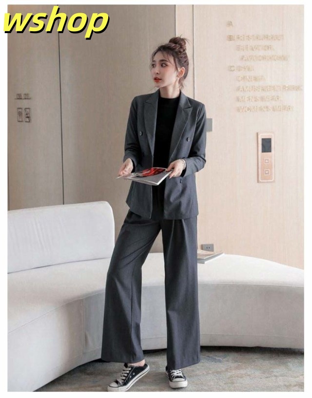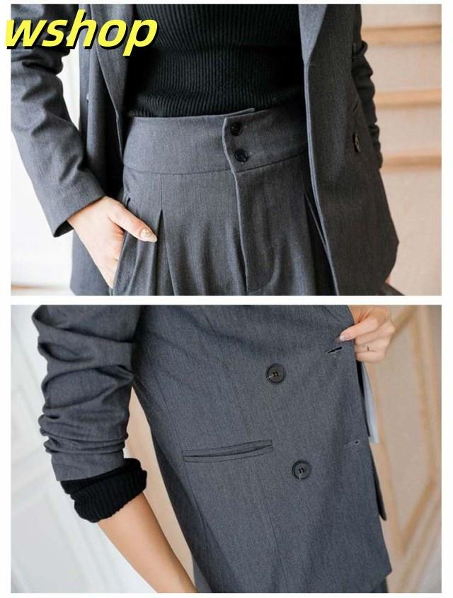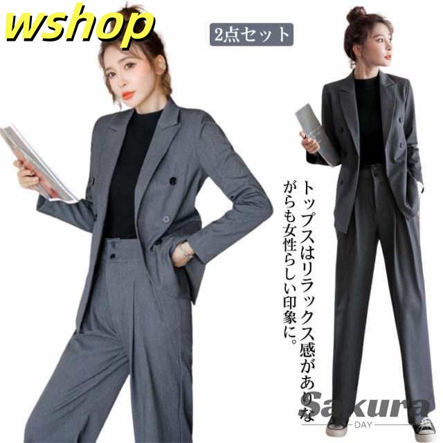 即納OK レビュー高評価 ママスーツ 50代 30代 かっこいい テーラードジャケット 冬 大きいサイズ 通勤 フォーマル 入学式 2点セット 40代 卒業式 母親 パンツ パンツスーツ セットアップ グレー レディース 【wshop 】ワイドパンツ 秋 在庫わずか
