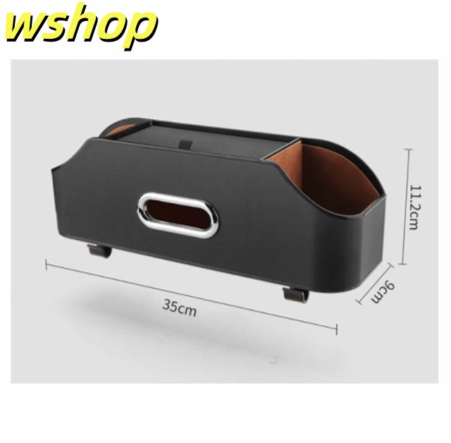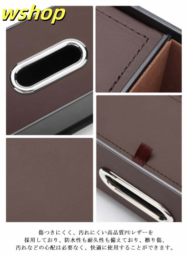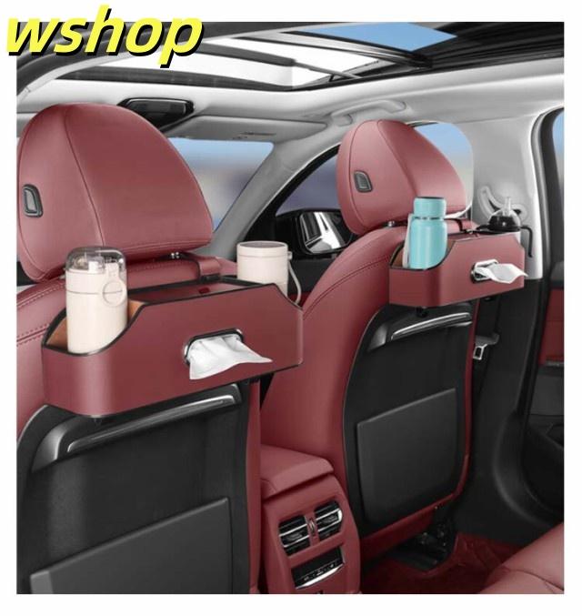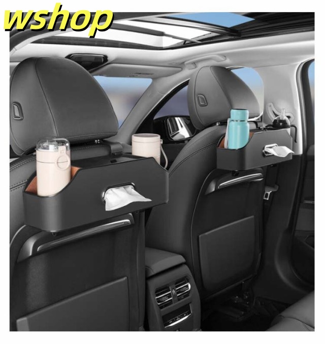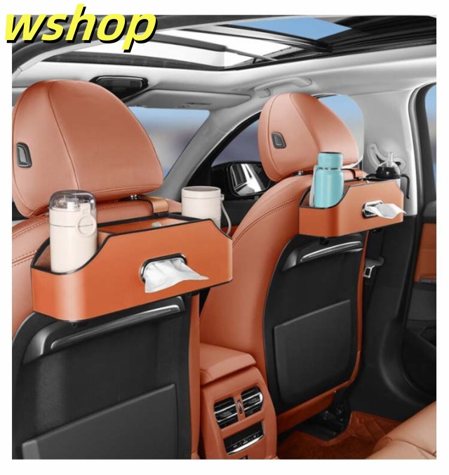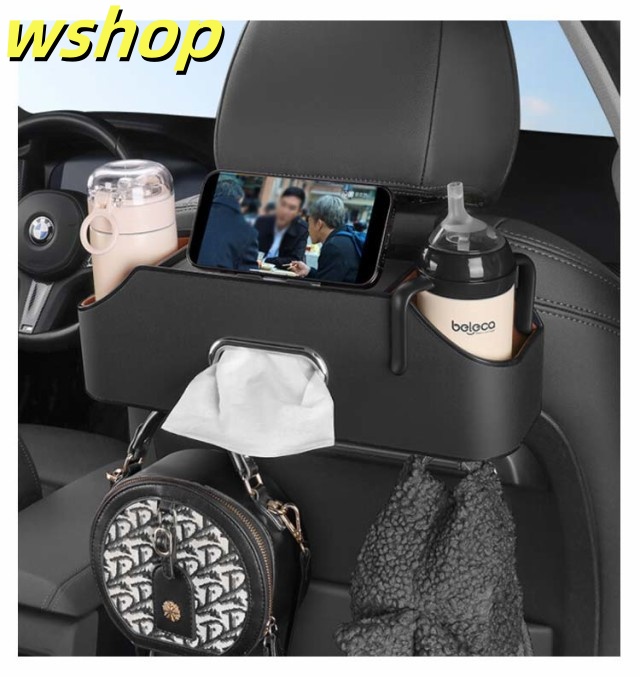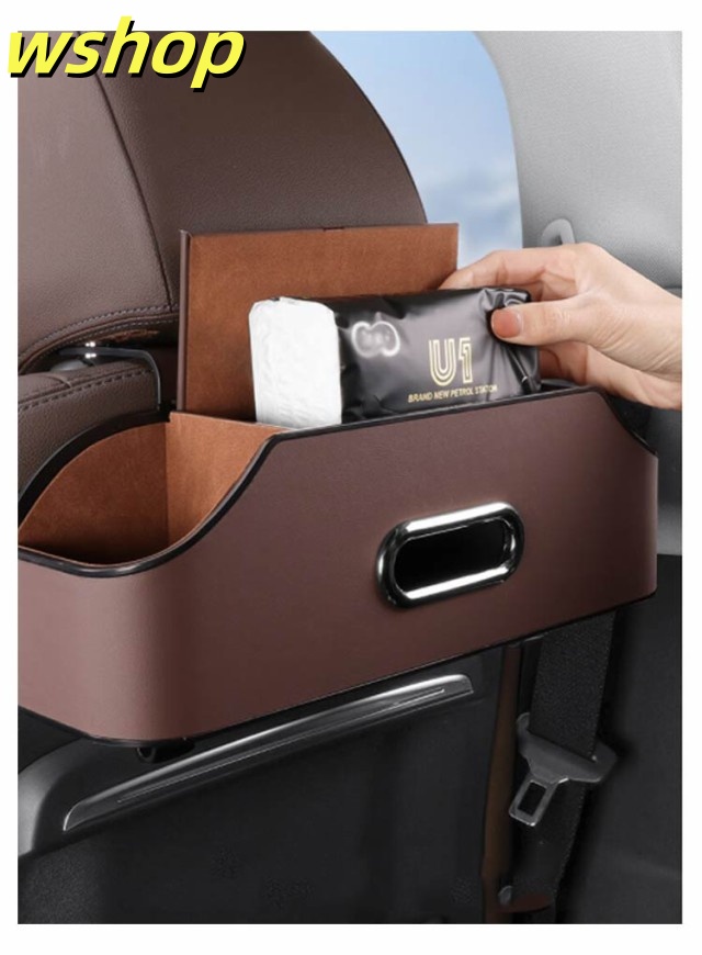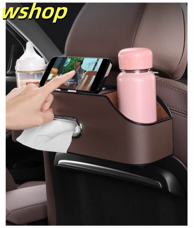 【wshop 】車用 ティッシュケース シートバックポケット 小物入れ ティッシュホルダー 車用収納ボックス ドリンクカップホルダー2個付き PUレザー 後部座席 収納バッグ ティッシュボックス 水筒/ボトル収納 防水防汚 耐摩耗 省スペース 吊り下げ 車載