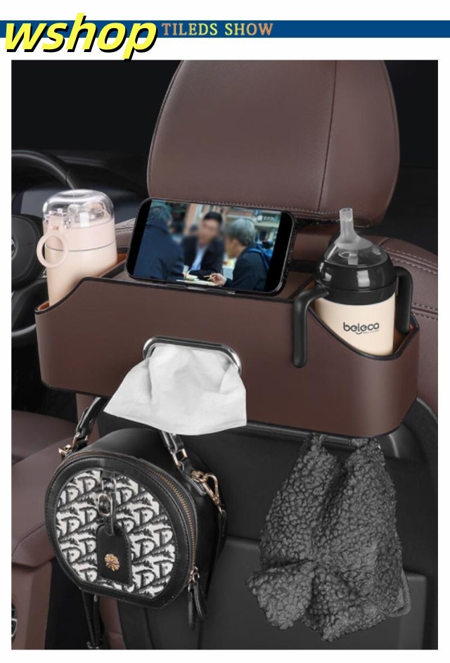 | 【車用多機能収納ボックス】【ドリンクホルダー2個付き】【全9色】 傷つきにくく、汚れにくい高品質PUレザーを採用しており、防水性も耐久性も備えており、擦り傷、汚れなどの心配は必要なく、快適に使用することができます。 収納能力抜群、車の中に散らした小物をまとめて楽に収納できる。シートバックに取り付ければ、車内を綺麗になり、実用性は心配無用。 取付には一切工具も必要なく、ヘッドレストロッドにフックで掛けるだけで簡単装着。多くのタイプの車にも使用ができる。 ティッシュ、カップ、子供用哺乳瓶、吊り下げバッグを保管でき、ボックスの下にフック2個付き。 | |