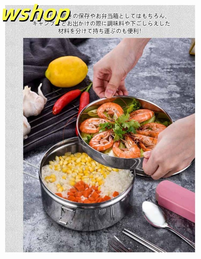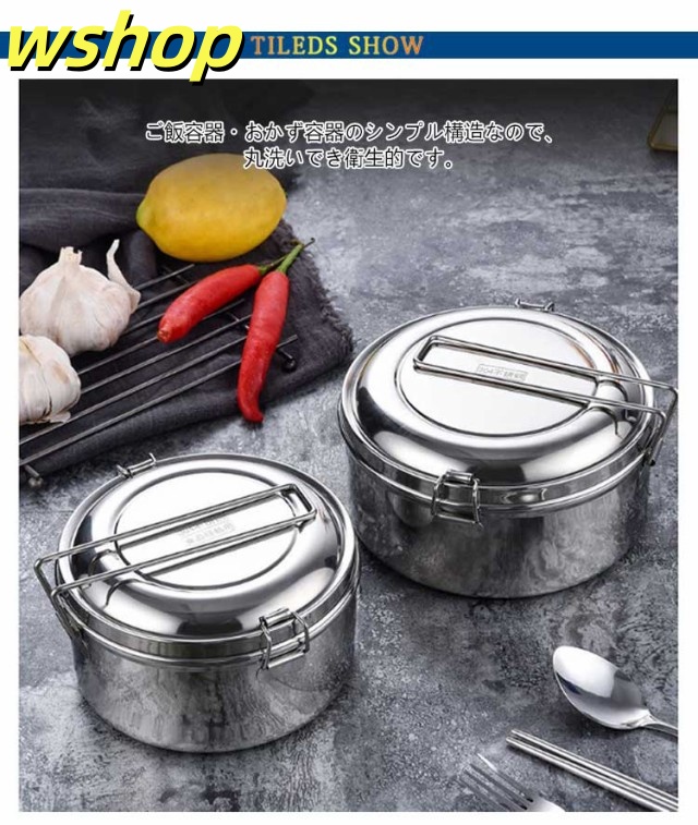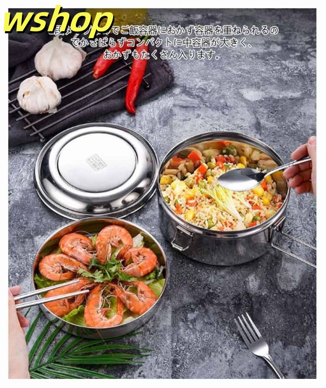 | 大盛りサイズのステンレスランチボックス 2段タイプなのでご飯容器におかず容器を重ねられるのでかさばらずコンパクトに中容器が大きく、おかずもたくさん入ります。 温かいごはんはもちろん、スープやカレーなどランチの幅が広がる。 ご飯容器・おかず容器のシンプル構造なので、丸洗いでき衛生的です。 本体は安心の食品グレード、保温性のあるステンレス容器で環境にやさしい。 普段の作り置きの保存やお弁当箱としてはもちろん、キャンプなどお出かけの際に調味料や下ごしらえした材料を分けて持ち運ぶのも便利! | |