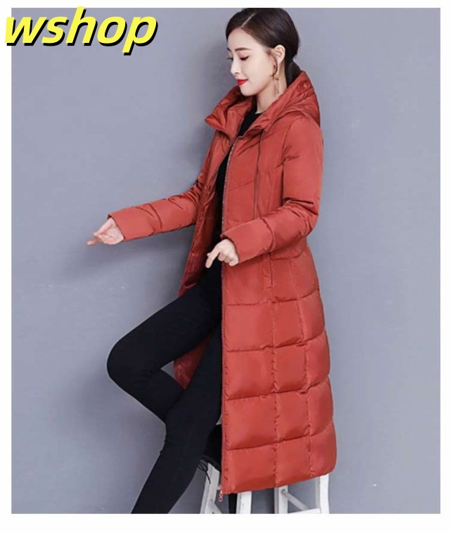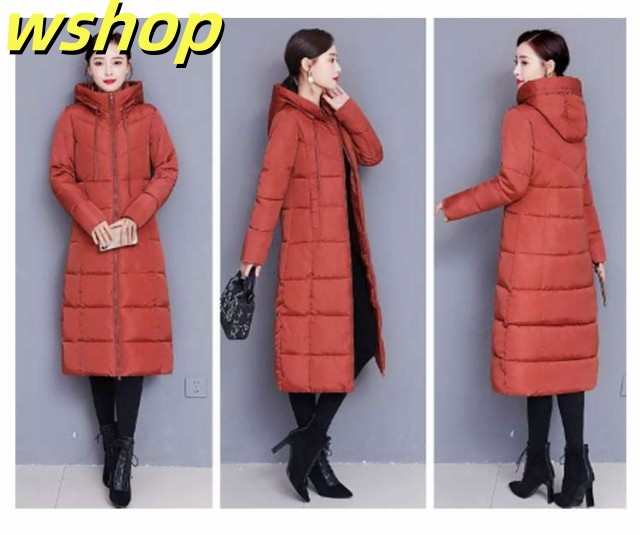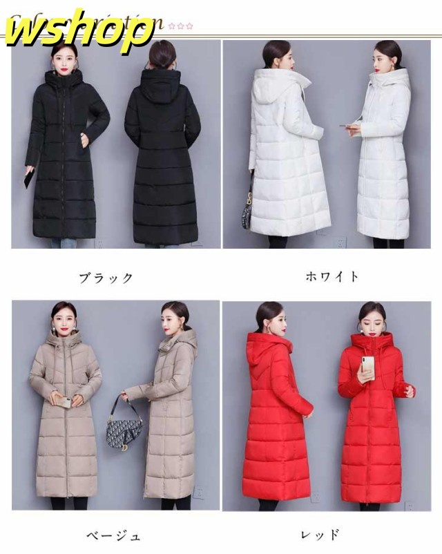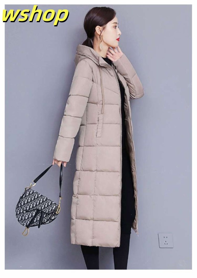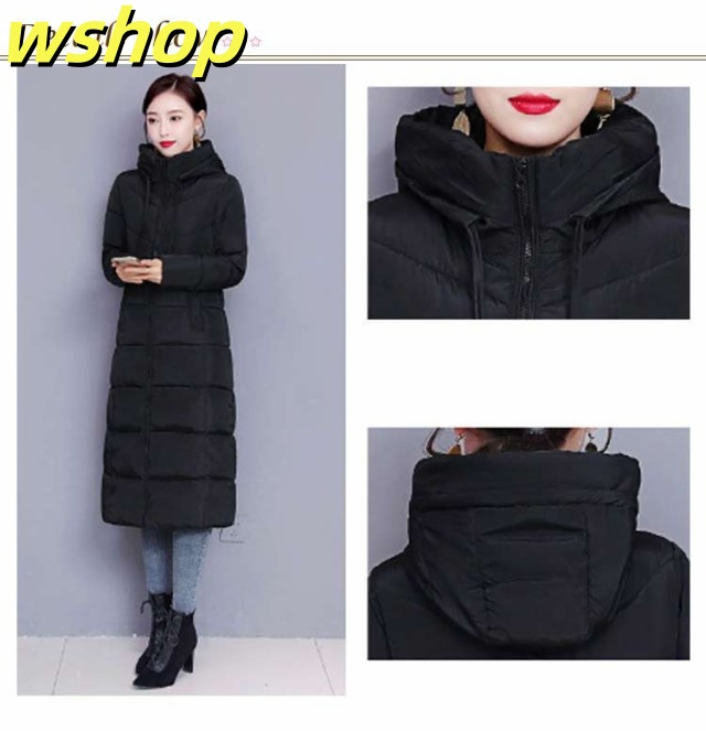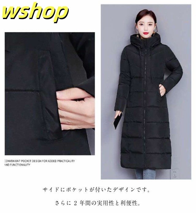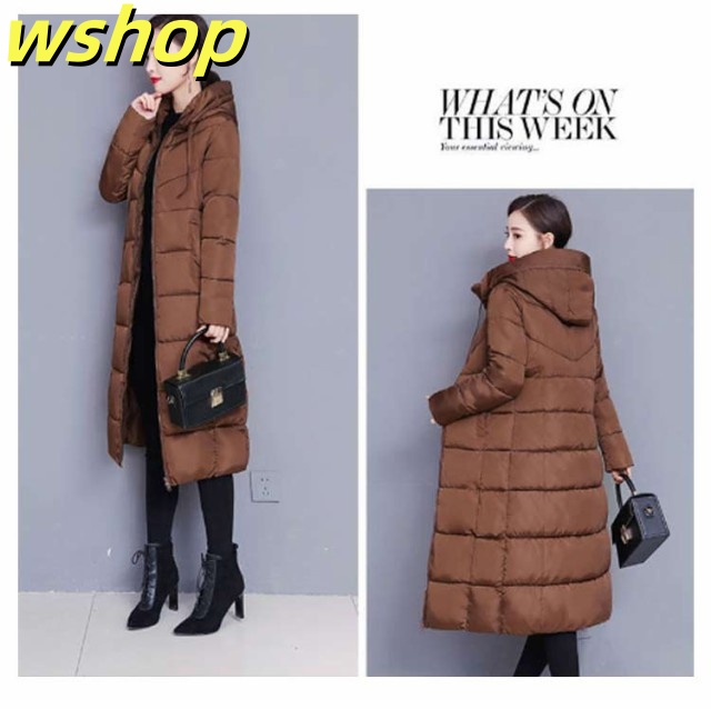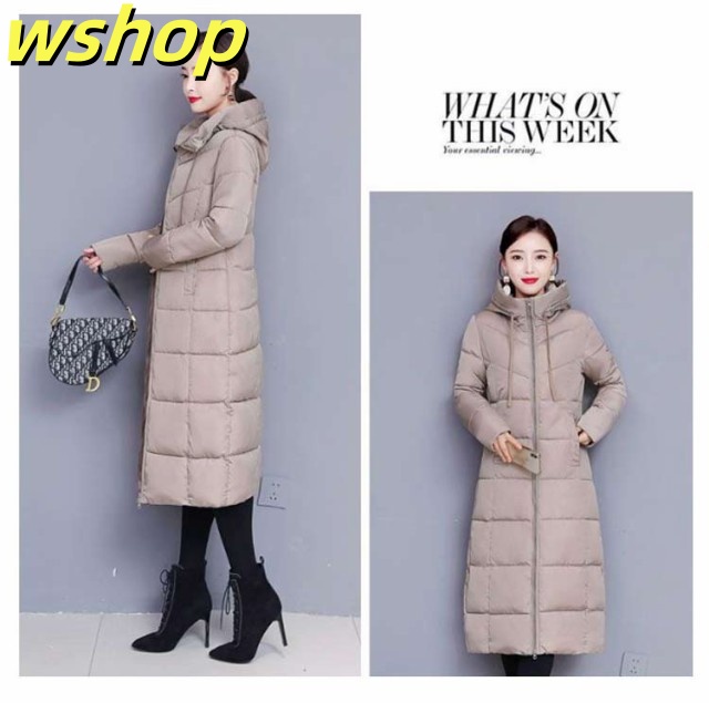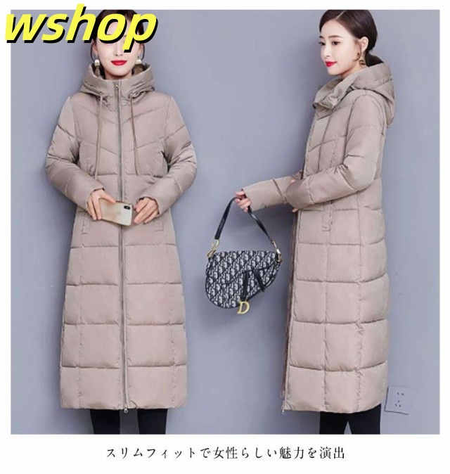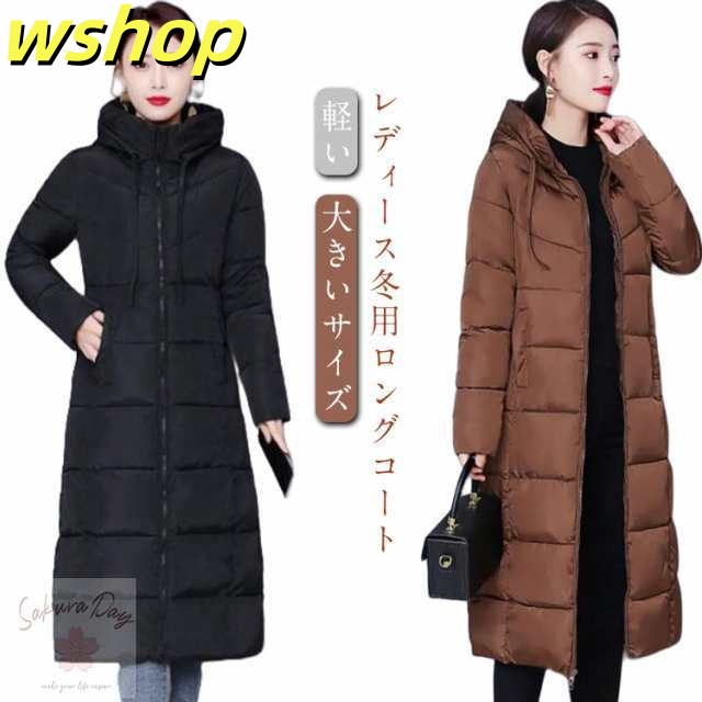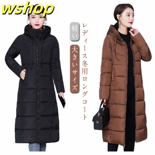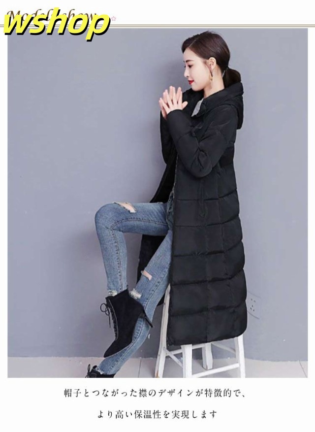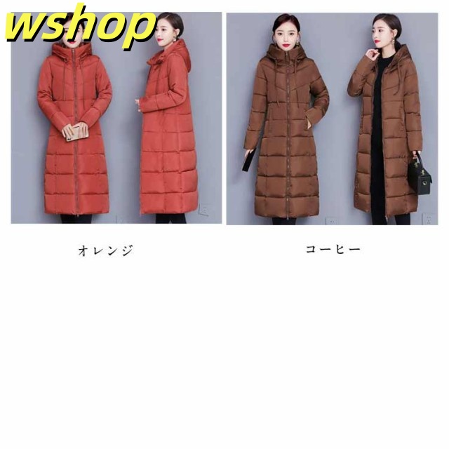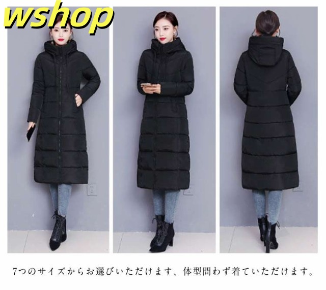 【wshop 】膝下 軽い 中綿コート 韓国風 冬 ロング丈 冬服 フード付き 大きいサイズ レディース ベンチコート アウター ロングコート ボリューム 無地 シンプル ロング丈 大人女性 ジャケット あったか 体型カバー 防寒 おしゃれ 暖かい マキシ丈 送料無料 通勤