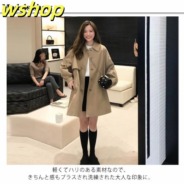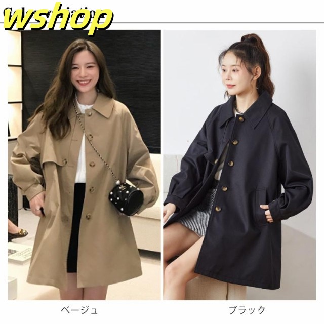 新登場 SNS話題 コート 通学 春 アウター きれいめ レディース ミドル丈 【wshop 秋 ライトアウター 大人 おしゃれ 長袖 春服 シンプル お出かけ カジュアル スプリングコート 無地 ロングコート 通勤 フェミニン ステンカラーコート 】トレンチ 在庫わずか