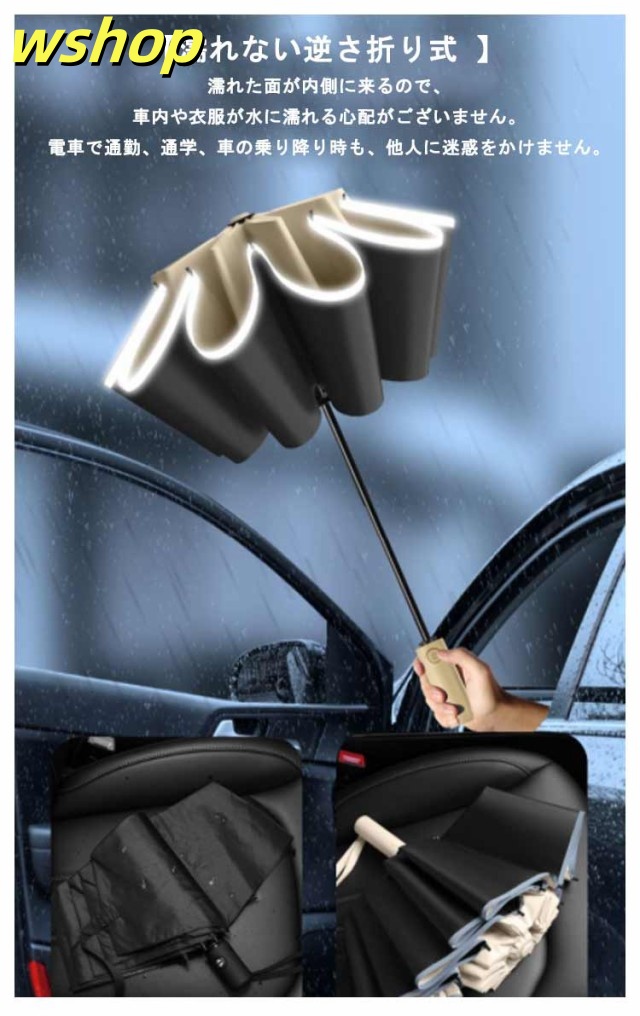逆さ傘 折りたたみ傘 自動開き 10本骨 逆開き 逆折り 折り畳み傘 メンズ レディース 日傘 雨傘 晴雨兼用 UV 遮光 超撥水 ジャンプ傘 ワンタッチ 耐風 丈夫 紫外線対策 女性 男性 濡れない傘 反射テープ付き