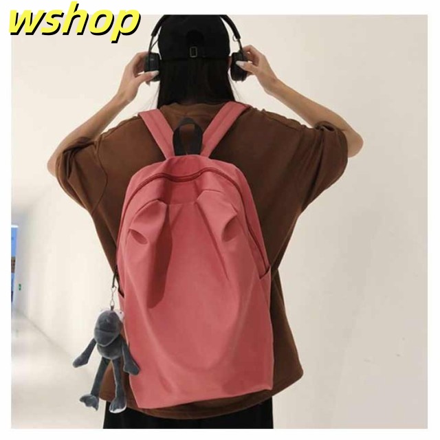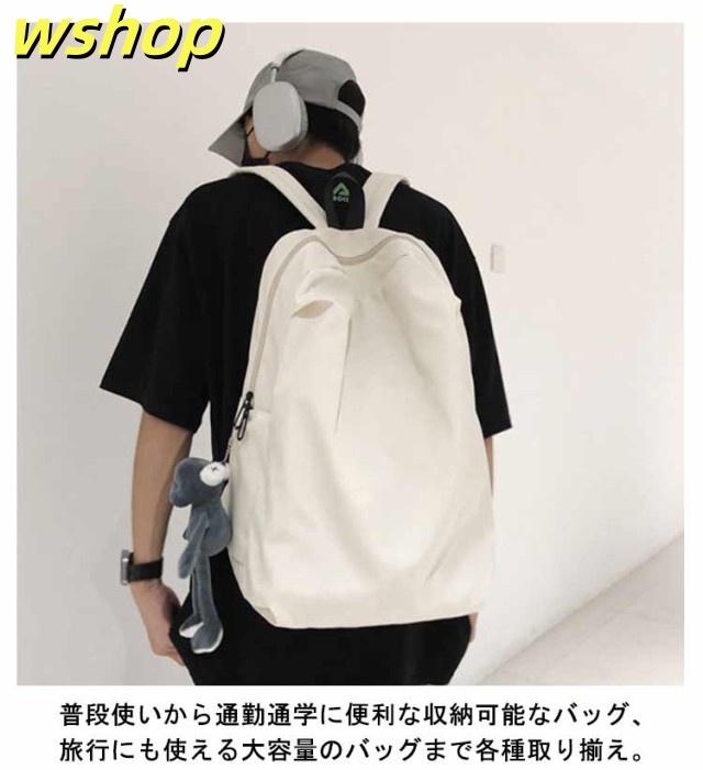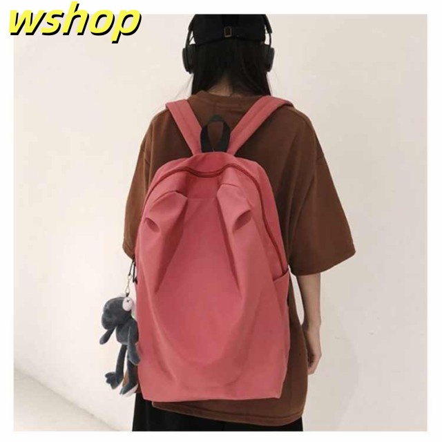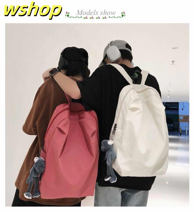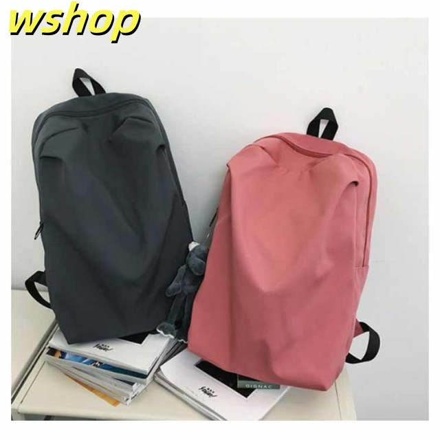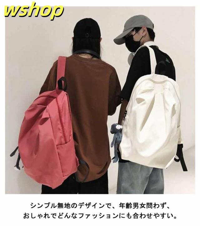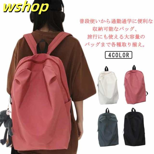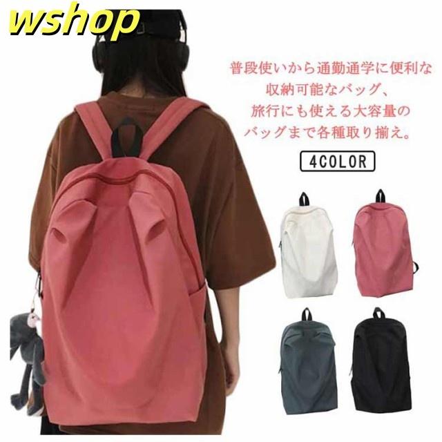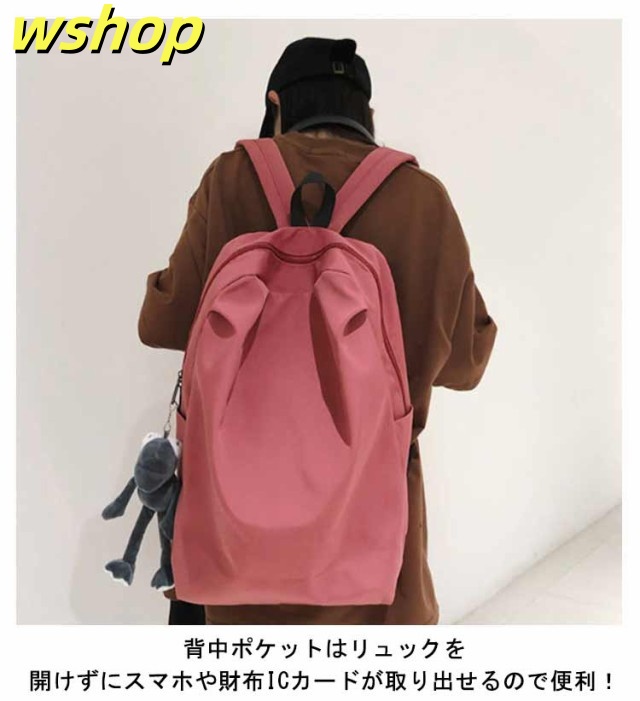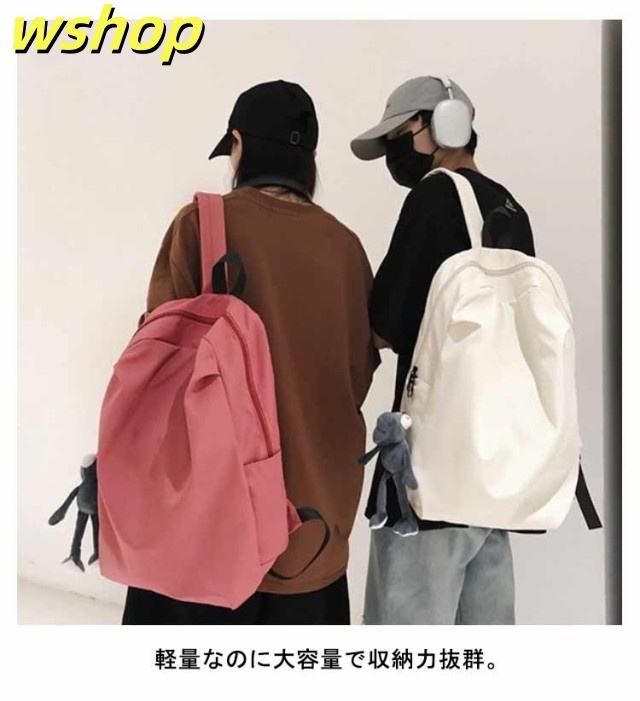 【wshop 】リュックサック レディース メンズ 背面ポケット付き ナイロン 軽量 軽い 大容量 A4対応 リュック バックパック ディバッグ 学生 旅行 おしゃれ 無地 ダブルファスナー付き サイズ調整可能 通学 通勤 ブラック ホワイト ピンク グレー 送料無料