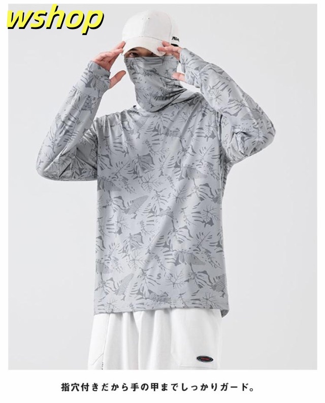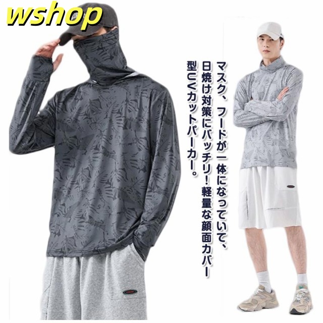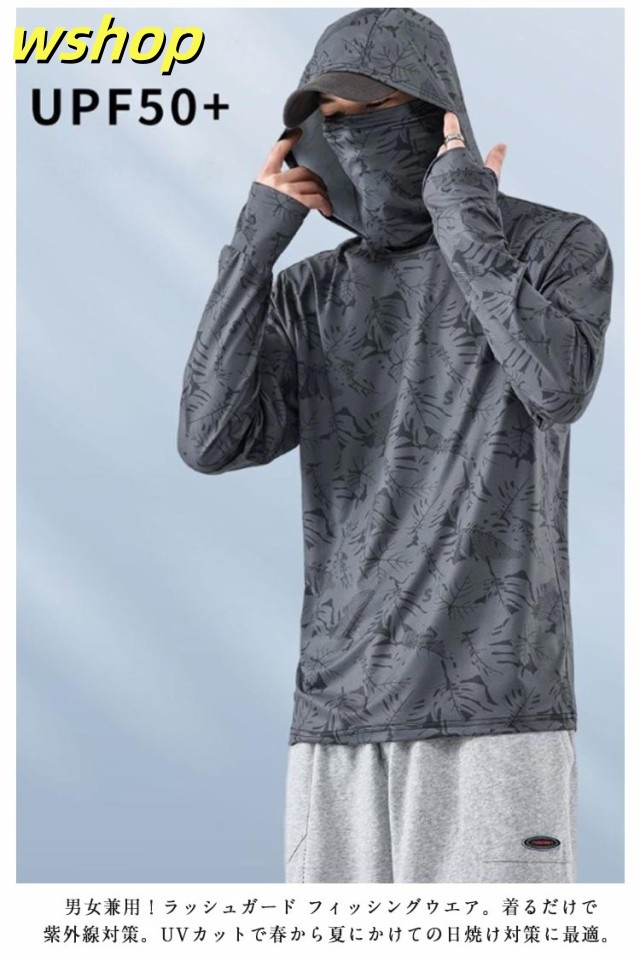 【wshop 】ラッシュガード メンズ レディース 長袖 uvカット パーカー おしゃれ フェイスカバー型 接触冷感 ラッシュガード uv パーカー 冷感 速乾 薄手 軽量 水着 サマーパーカー UPF50+ ビーチ プール キャンプ 紫外線対策 日焼け防止 体型カバー