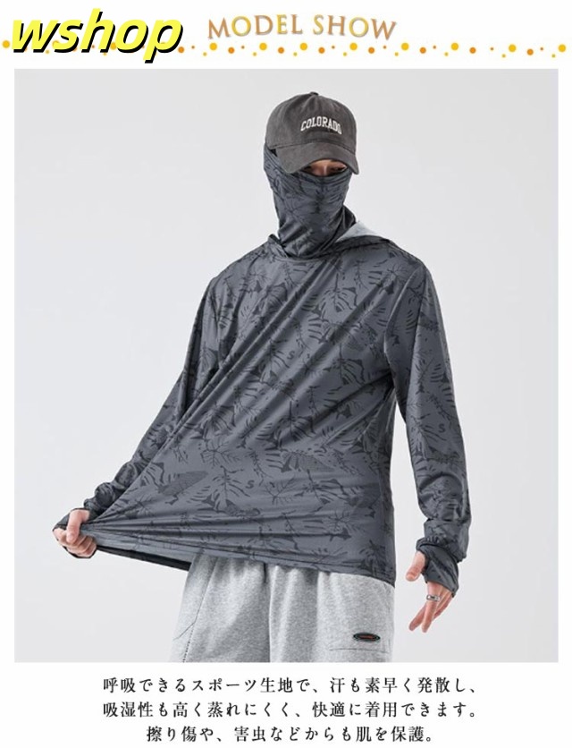 | マスク、フードが一体になっていて、日焼け対策にバッチリ!軽量な顔面カバー型UVカットパーカー。 男女兼用!ラッシュガード フィッシングウエア。着るだけで紫外線対策。UVカットで春から夏にかけての日焼け対策に最適。 通気性優良かつ吸水速乾素材で夏場の汗ばむ季節に快適なサラリとした肌触りのラッシュガード 呼吸できるスポーツ生地で、汗も素早く発散し、吸湿性も高く蒸れにくく、快適に着用できます。擦り傷や、害虫などからも肌を保護。 指穴付きだから手の甲までしっかりガード。 | |