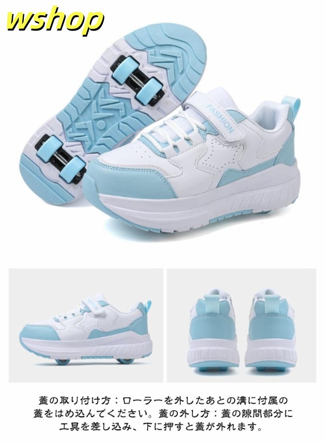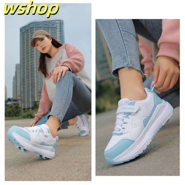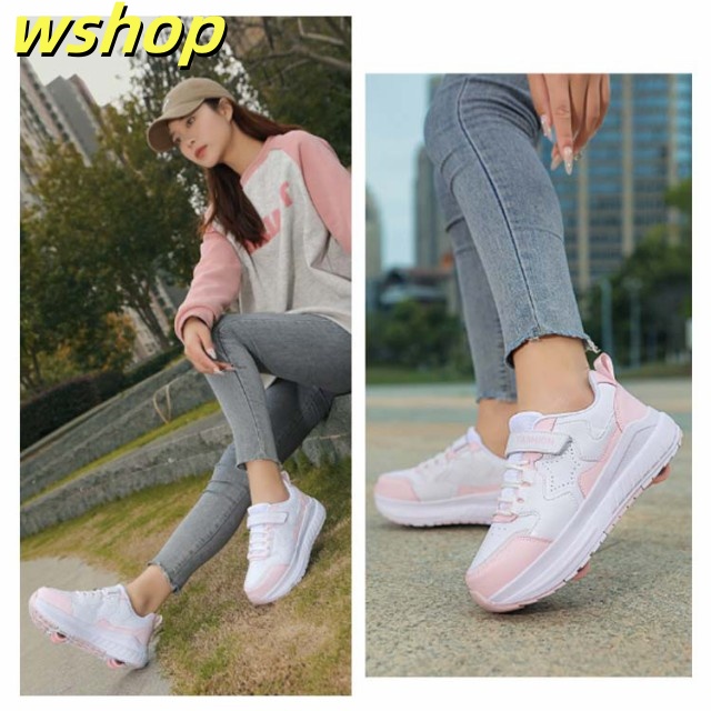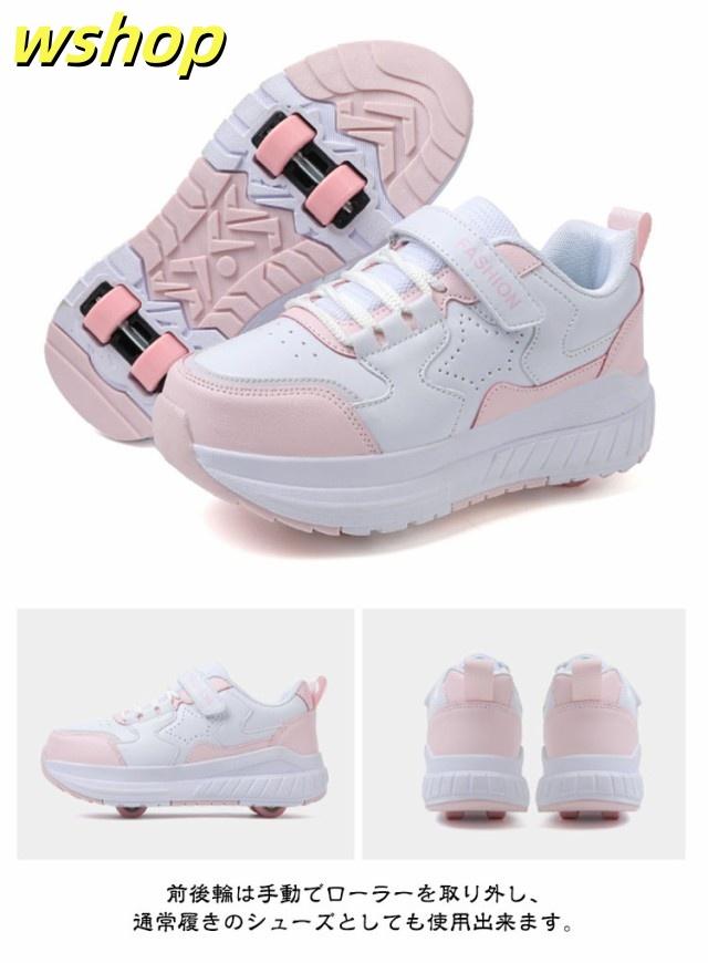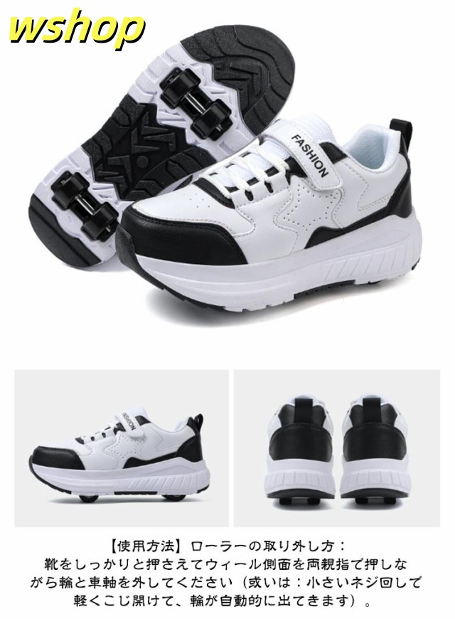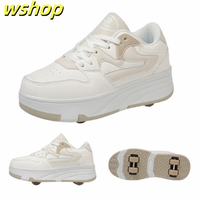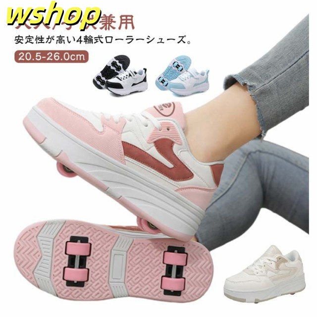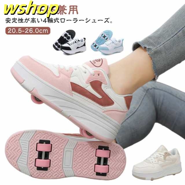 【wshop 】安定性が高い 4輪 ローラーシューズ ローラースケート 大人 子供 スニーカー ローラーシューズ 取り外し ワンボタン キッズ 学生 女の子 男の子 運動靴 スポーツ 靴 シューズ ローラースニーカー 初心者 通気性 白 黒 ブラック ホワイト ピンク ブルー ベージュ