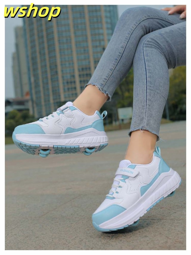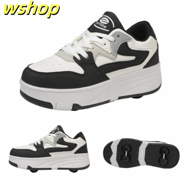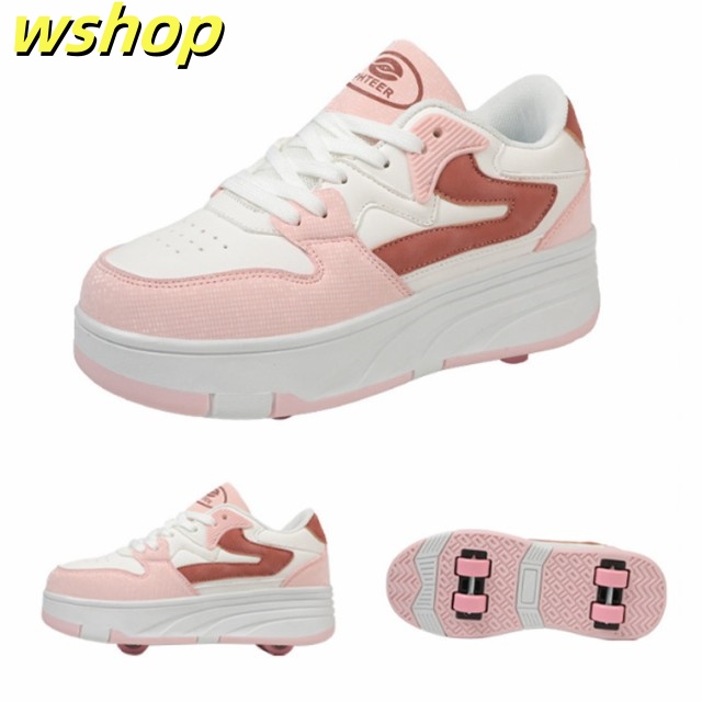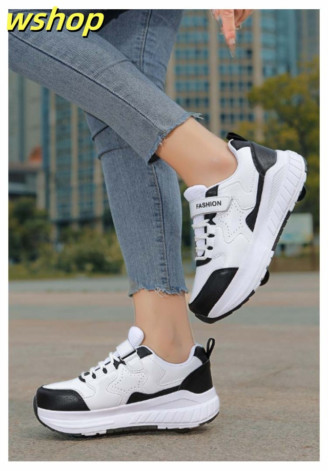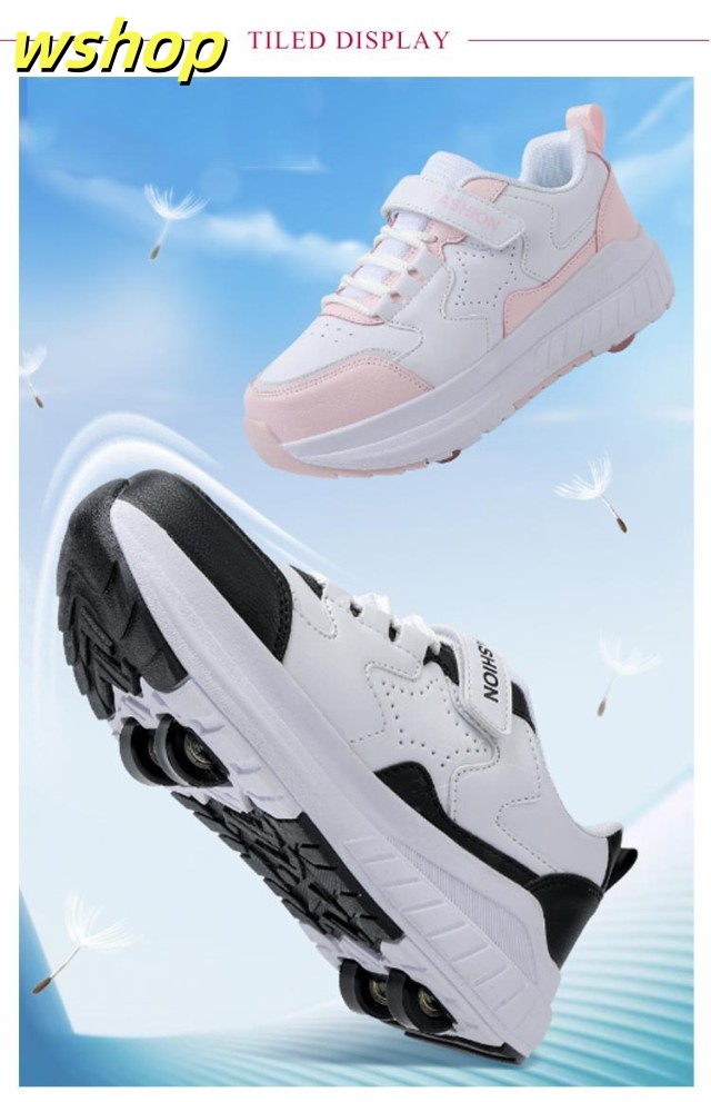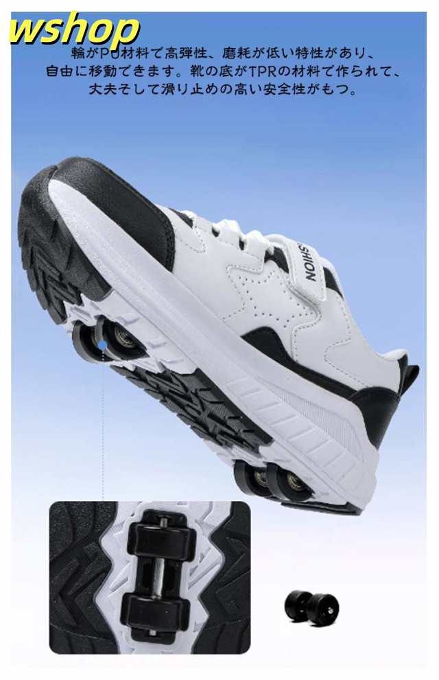 【wshop 】安定性が高い 4輪 ローラーシューズ ローラースケート 大人 子供 スニーカー ローラーシューズ 取り外し ワンボタン キッズ 学生 女の子 男の子 運動靴 スポーツ 靴 シューズ ローラースニーカー 初心者 通気性 白 黒 ブラック ホワイト ピンク ブルー ベージュ