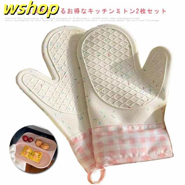 【wshop 】シリコン 北欧風なべつかみ 鍋敷き キッチンミトン オーブンミット 北欧 かわいい チェック柄 2点セット 鍋つかみ キッチンツール キッチン用品 おしゃれ 可愛い プレゼント キッチン雑貨 配膳用品 使いやすい アウトドア キャンプ ギフト 送料無料