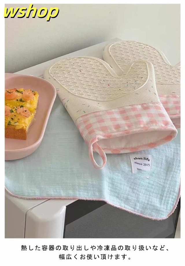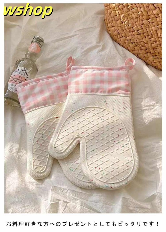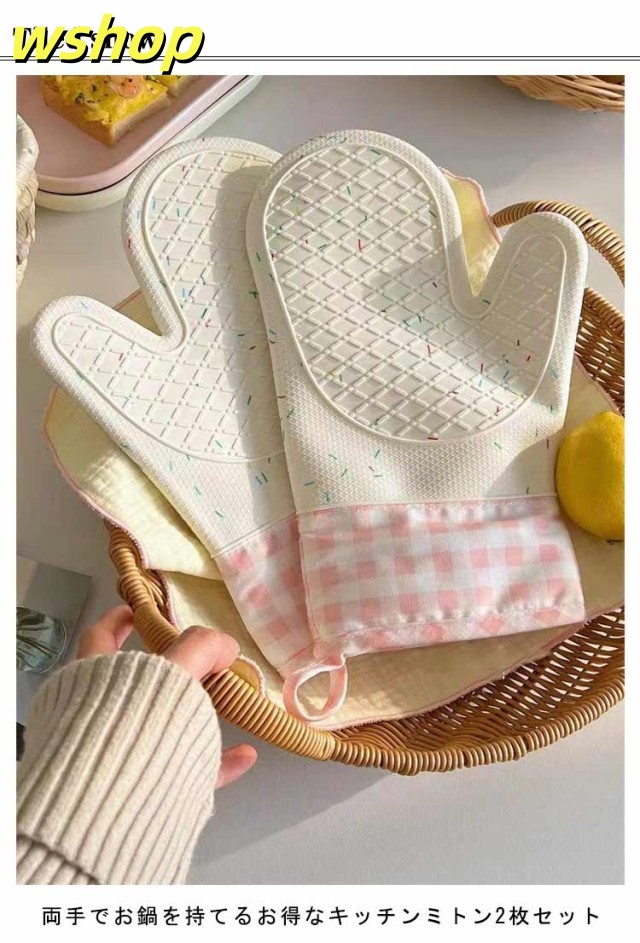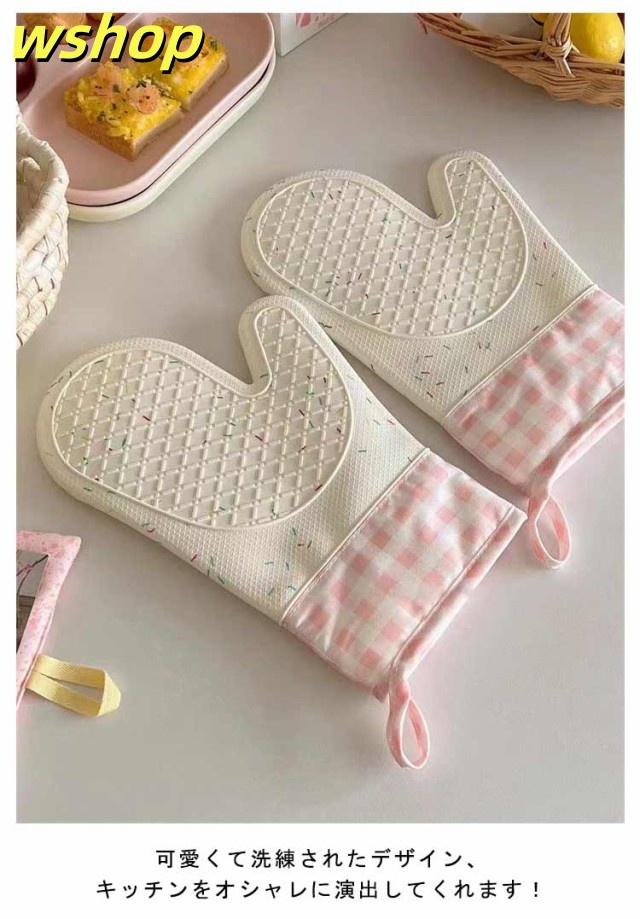 | 両手でお鍋を持てるお得なキッチンミトン2枚セット 生地が厚く、熱いものを持つ時も手や腕を熱から守ってくれます。 熱した容器の取り出しや冷凍品の取り扱いなど、幅広くお使い頂けます。 収納に便利な吊り下げ用のストラップ付き、使わない時はキッチンの壁に掛けることができます。 可愛くて洗練されたデザイン、キッチンをオシャレに演出してくれます! お料理好きな方へのプレゼントとしてもピッタリです! | |