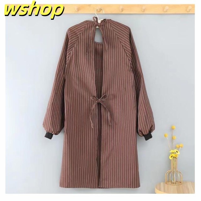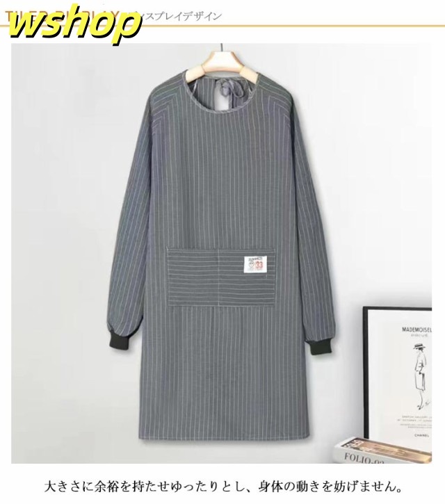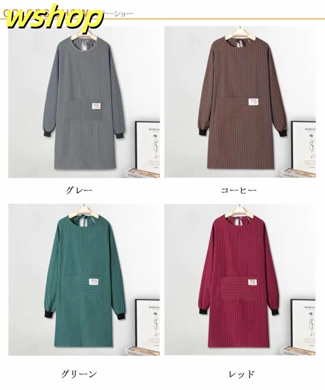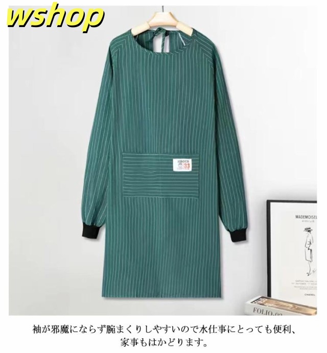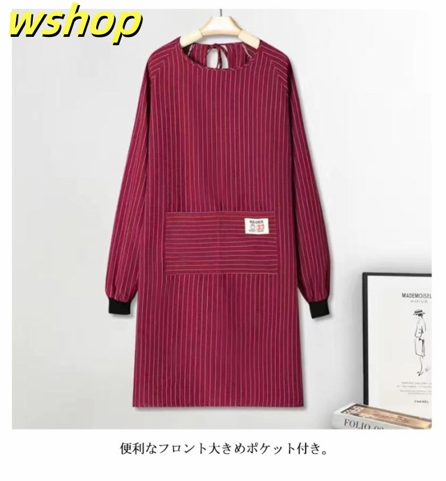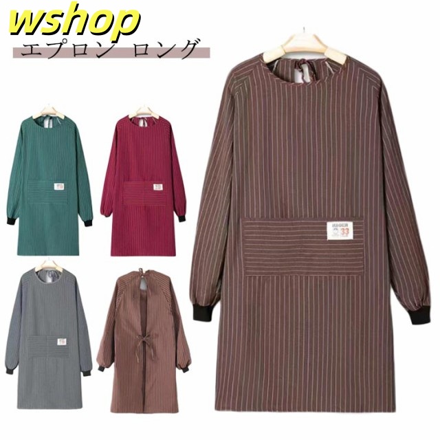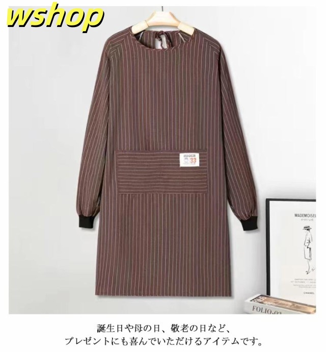 【wshop 】エプロン ロング 大人用 ポケット付き おしゃれ 割烹着 エプロン 大きいサイズ ゆったり エプロン 飲食店 スモック ストライプ柄 レディース 介護士 保育士 北欧 キッチン用品 大人 シンプル ギフト かわいい 母の日 プレゼント 実用的 長袖 送料無料