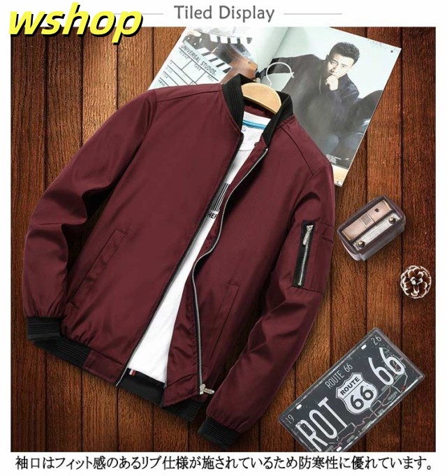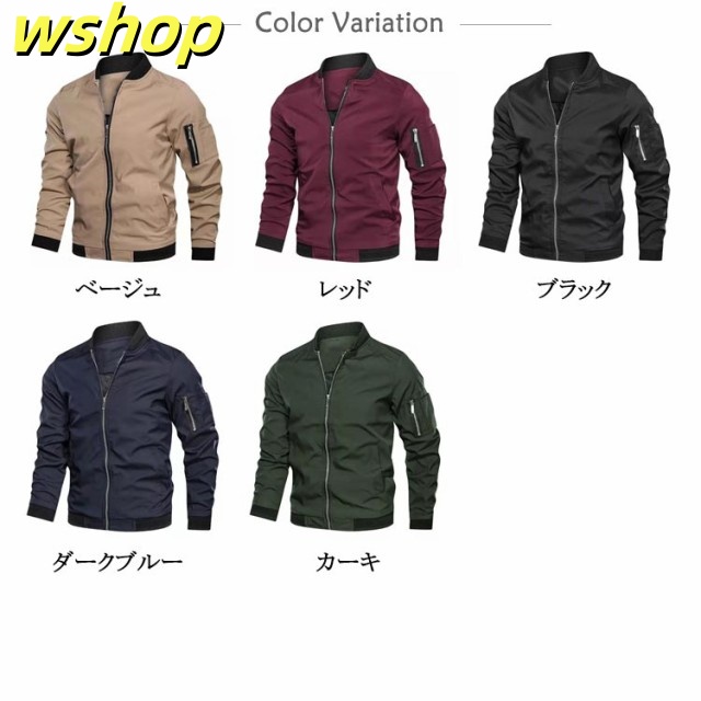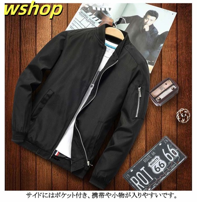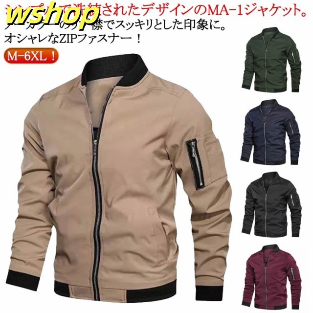 【wshop 】ブルゾン メンズ ミリタリージャケット ジップジャケット カジュアル スタジャン フライトジャケット MA-1 MA-1 ジャンパー 大きいサイズ スポーツ 春服 秋物 作業着 アウター シンプル 春秋 薄手 作業着 MA-1ジャケット おしゃれ バイク キャンプ 送料無料