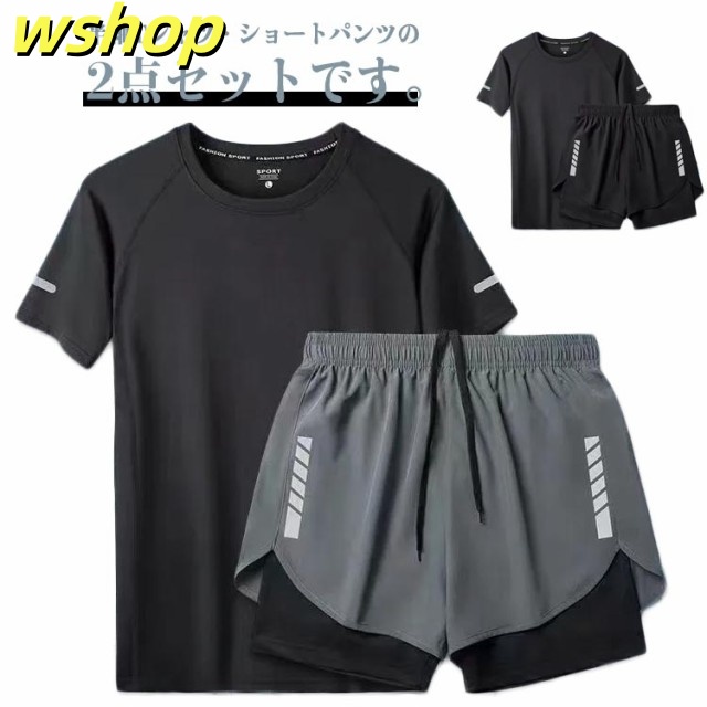 新登場 SNS話題 海パン スポーツ 【wshop 海遊び 男性用 送料無料 上下セット 】水着 ハーフパンツ 吸汗速乾 大きいサイズ 半袖Tシャツ ストレッチ性 インナーパンツ付き 水陸両用 通気性 セットアップ メンズ ラッシュガード ジム ブルー 送料無料