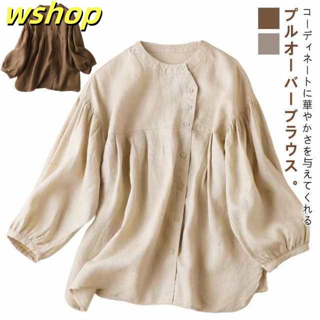 話題商品 ランキング常連 長袖シャツ リネンシャツ シャツブラウス 吸湿 柔らかい シンプル 春 無地 綿麻 前開き アウター 】送料無料 通学 シャツ チュニック 夏 ボタン おしゃれ 通勤 通気性 トップス 【wshop 長袖 上品 スタンドカラー ブラウス 送料無料