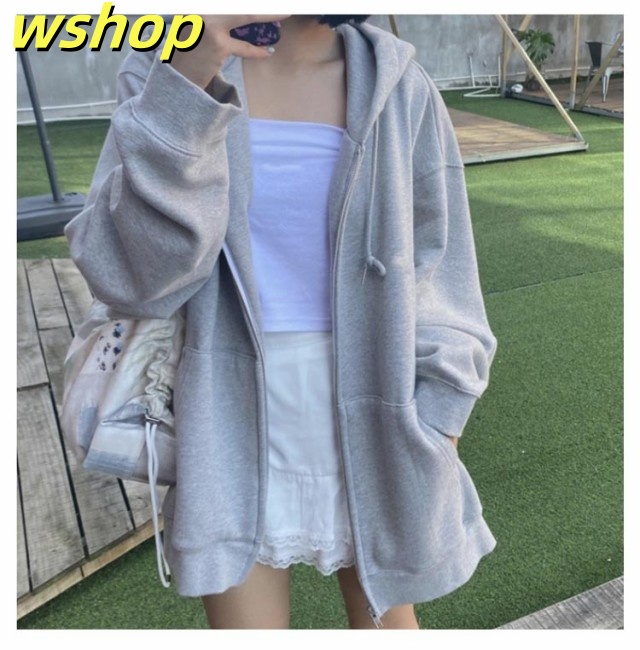即納OK SNS話題 大きいサイズ 春 秋服 きれいめ おしゃれ 長袖 裏起毛 フード付き 冬 レディース 秋 無地 【wshop アウター パーカー 可愛い 薄手 韓国ファッション ジップアップパーカー グレー 】春 ゆったり ブラック ライトアウター メンズ 春服 スウェット 送料無料