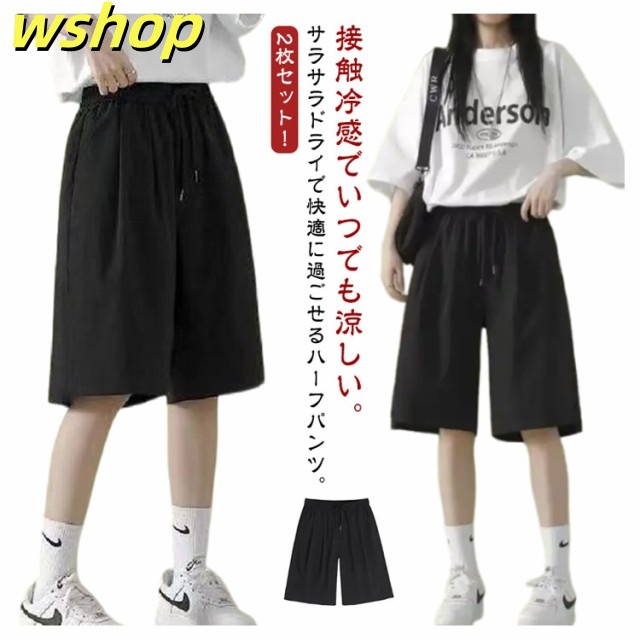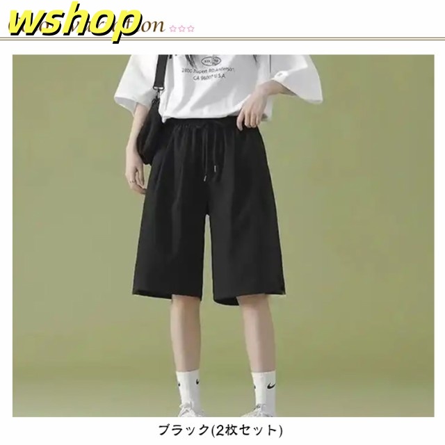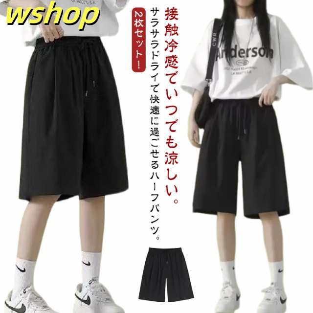 【wshop 】2枚セット! ハーフパンツ レディース ゆったり ショートパンツ 五分丈 おしゃれ 接触冷感 通気 吸汗 速乾 短パン カジュアル スポーツ スウェットパンツ 夏 ヨガ ランニング 運動着 トレーニング バスパン ジャージ ルームウェア 軽量 サラサラ ドライ