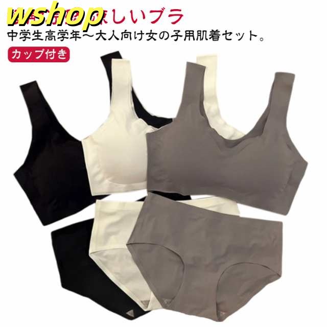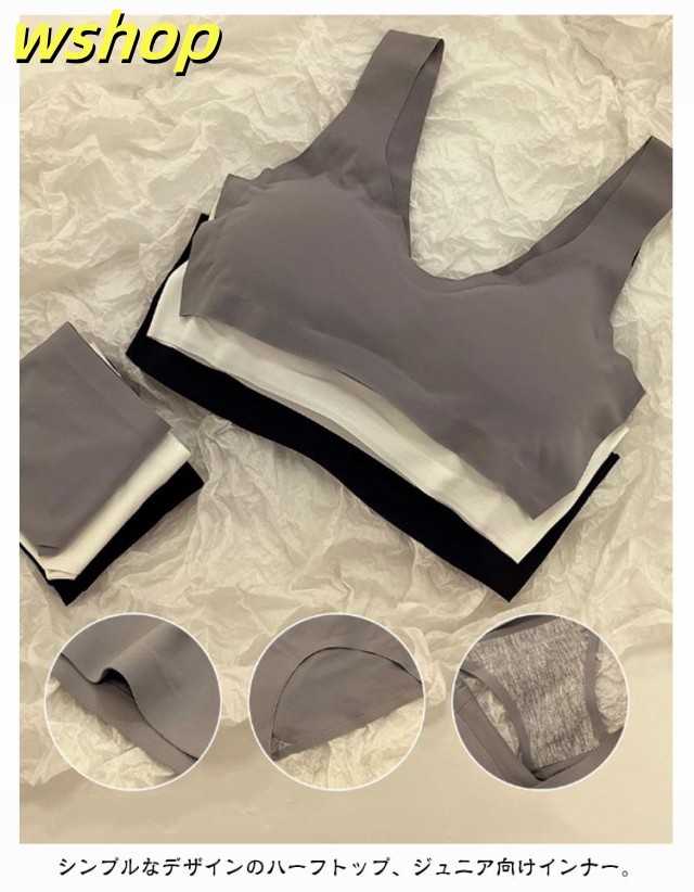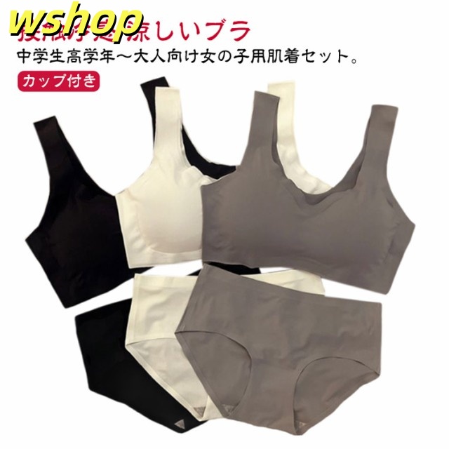 【wshop 】無地 キッズ アンダーウェア パッド付き カップ付き ブラジャー 子供 可愛い 上下セット ノンワイヤー 冷感 ブラ インナー 接触冷感 涼しいブラ 夏 シームレス 大人 女の子 パンツ 肌着 ブラジャー ジュニアブラ スポーツブラ 中学生 下着 ショーツ