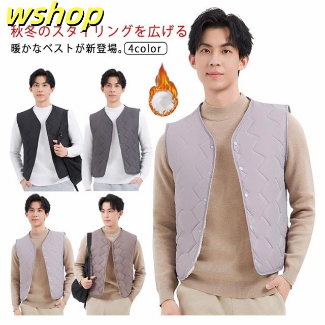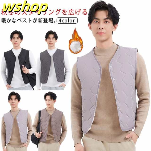 【wshop 】冬 中綿ベスト ダウンベスト メンズ ダウンベスト ベスト あったか インナーダウン 保温 Vネック 秋 ジレ 防寒 暖かい インナーベスト 防風 ルームウェア 防寒ベスト ビジネス 釣り 作業着 裏フリース 裏起毛 軽量 大きいサイズ 秋冬 M L XL 2XL 3XL 4XL