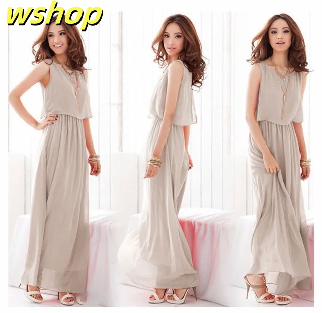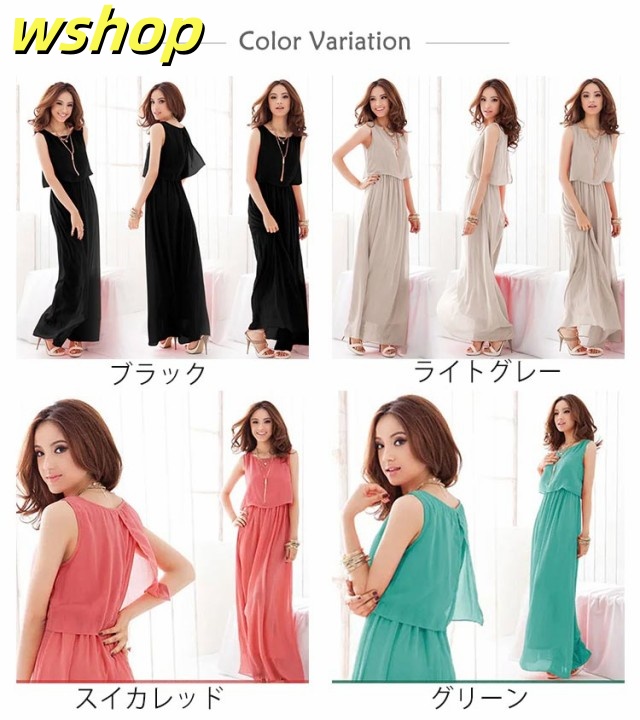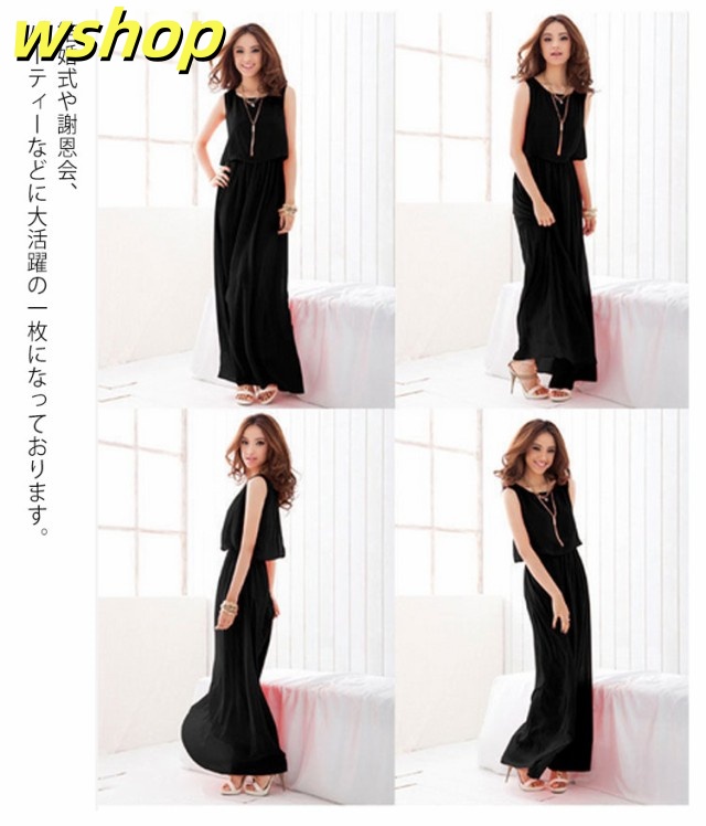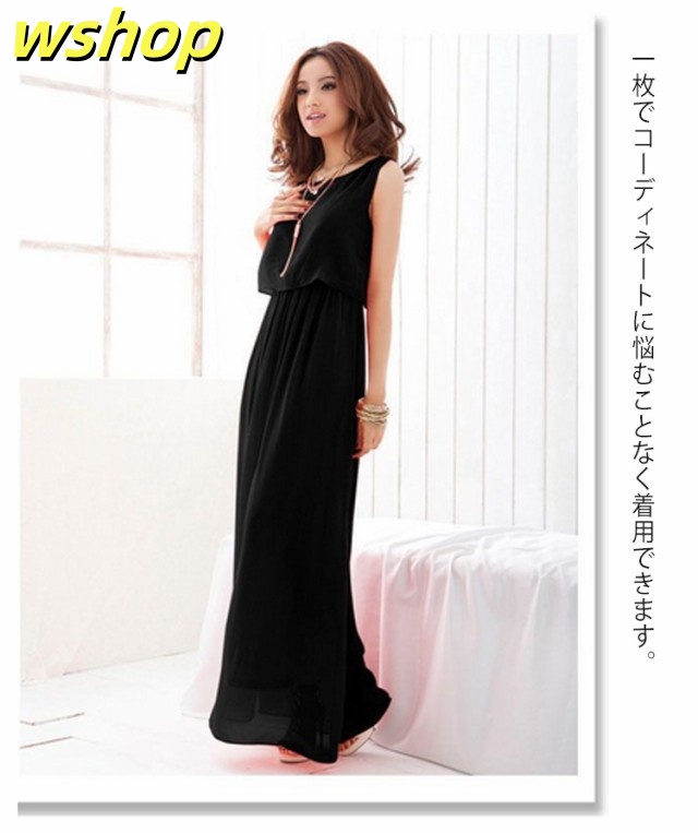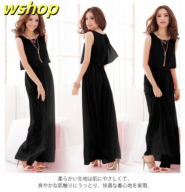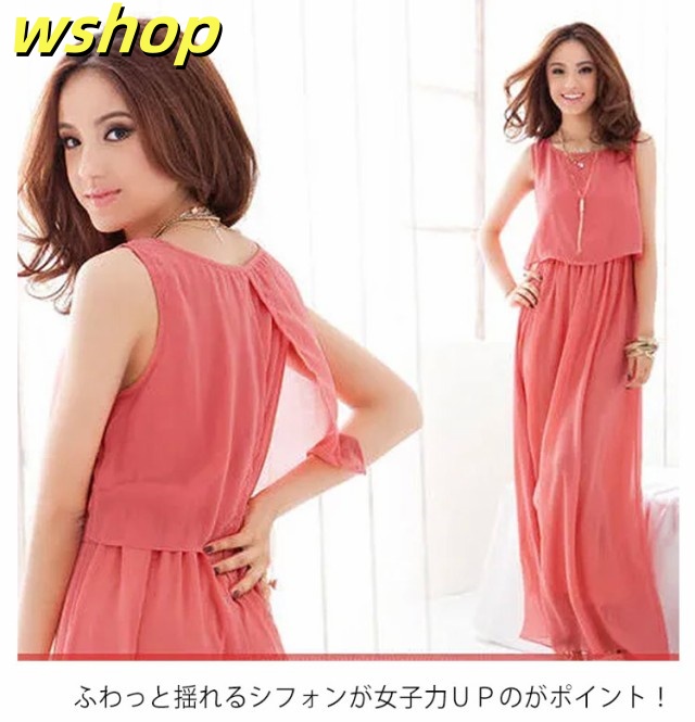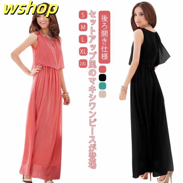 【wshop 】夏ワンピース 夏 ドレス ノースリーブワンピース 可愛い ふんわり マキシワンピース ロング丈 フォーマル リゾート セットアップ風 フォーマル 足長 袖なし 上品 大きいサイズ レディース シフォン 無地 着痩せ 後ろ開き仕様 エレガント 春夏 旅行 ギフト マキシ