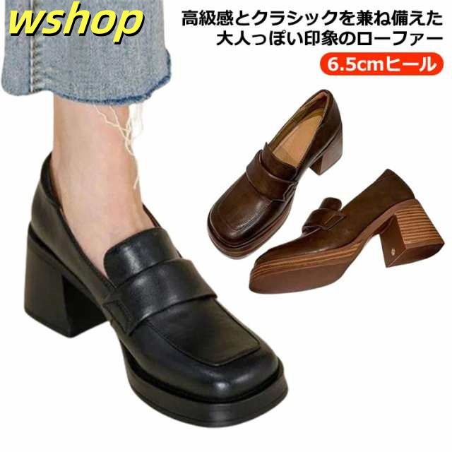 ローファー パンプス レディース 靴 6.5cmヒール スクエアトゥ 柔らかい 通勤 通学 靴 学生 シューズ ヒール 高め 可愛い 太ヒール チャンキーヒール 美脚 おしゃれ 婦人靴 シンプル 安定感 女性用 春 秋