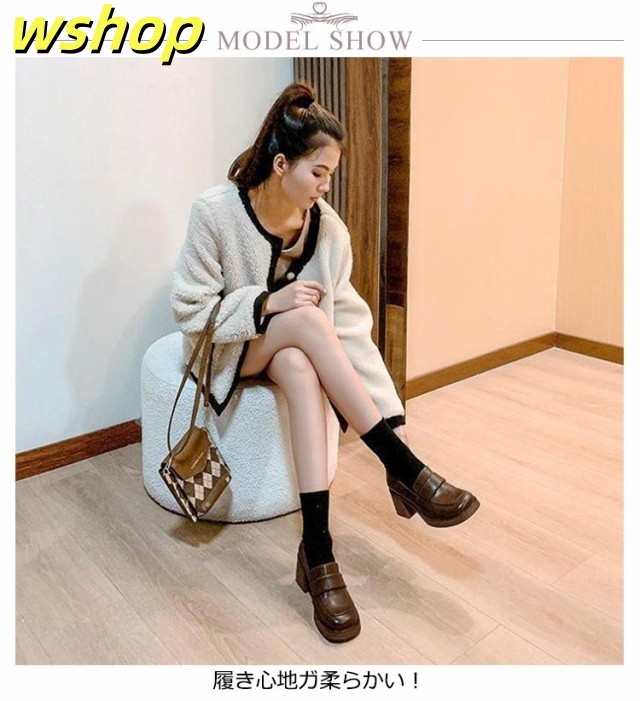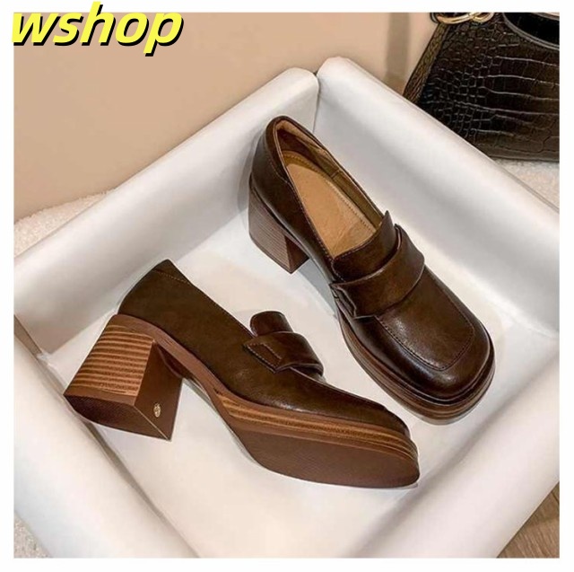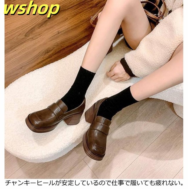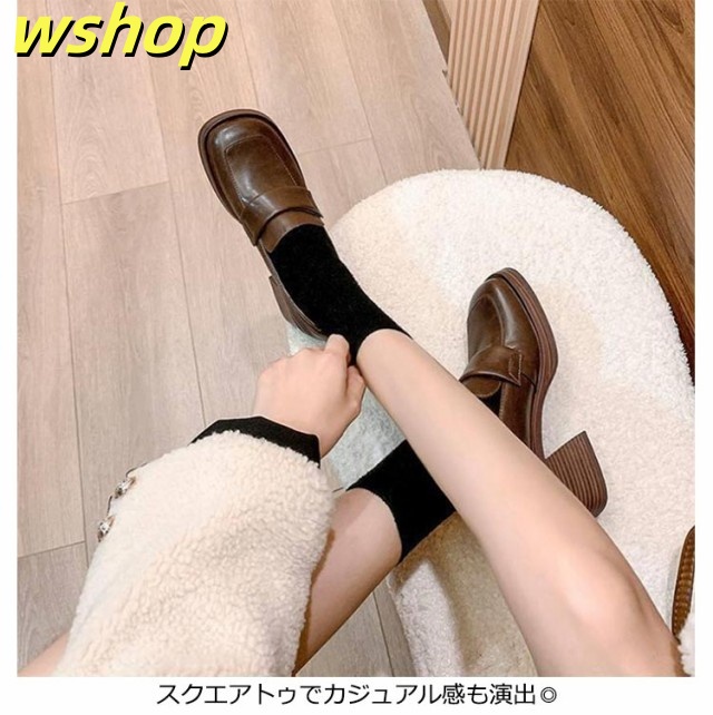 軽量仕様 SNS話題 スクエアトゥ 秋 おしゃれ シンプル 可愛い 安定感 婦人靴 シューズ 柔らかい 春 【wshop 】ローファー 美脚 女性用 チャンキーヒール パンプス 靴 通勤 通学 太ヒール レディース 高め 6.5cmヒール 学生 ヒール 送料無料
