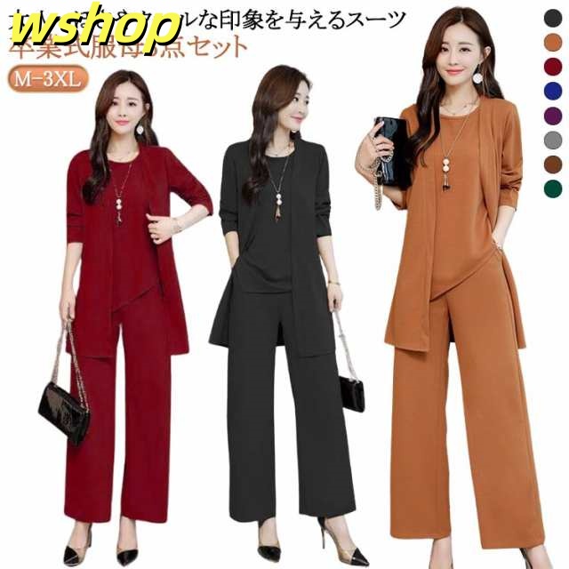 【wshop 】スーツジャケット セレモニースーツ レディース ママ 卒業式 母 卒園式 通勤 服 服装 40代 3点セット 入学式 七五三 パンツスーツ 結婚式 ママスーツ 記念日 発表会 お宮参り 入園式 OL 20代 30代 フォーマル 50代 黒 ブラック 上下セット 卒業式 大きいサイズ