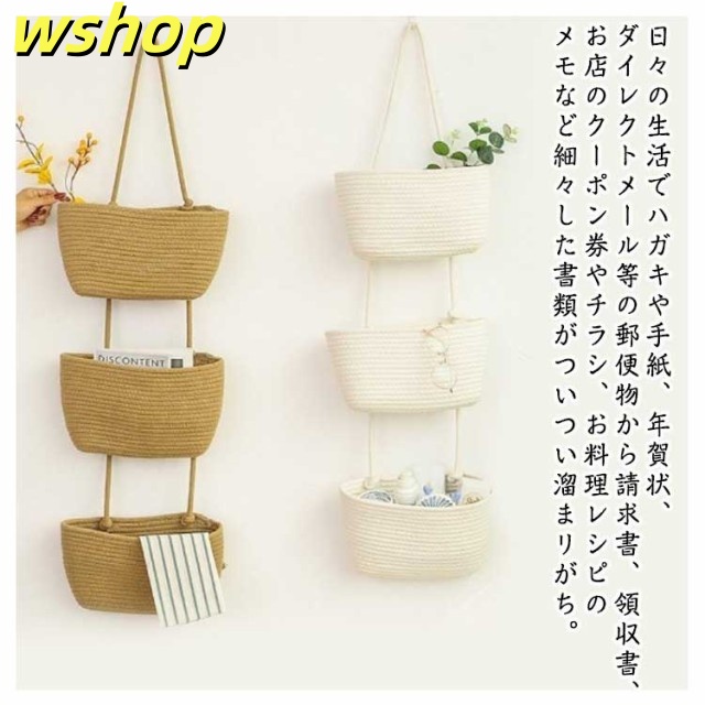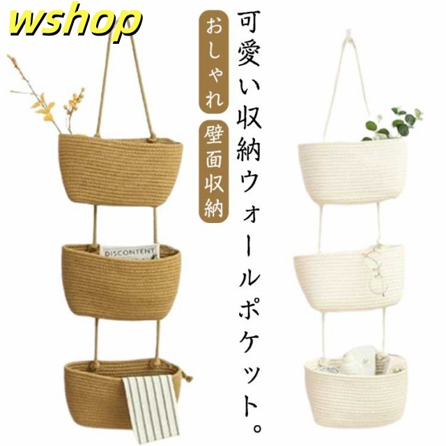 話題商品 ランキング常連 マチ浅 編み 収納 壁掛け収納 ナチュラル 小物入れ ウォール ポケット 壁掛け 大容量 おしゃれ レターホルダー 吊り下げ インテリア オシャレ 】ウォールポケット 壁面収納 北欧 【wshop バスケット 壁面装飾 壁飾り シンプル 3段 在庫わずか