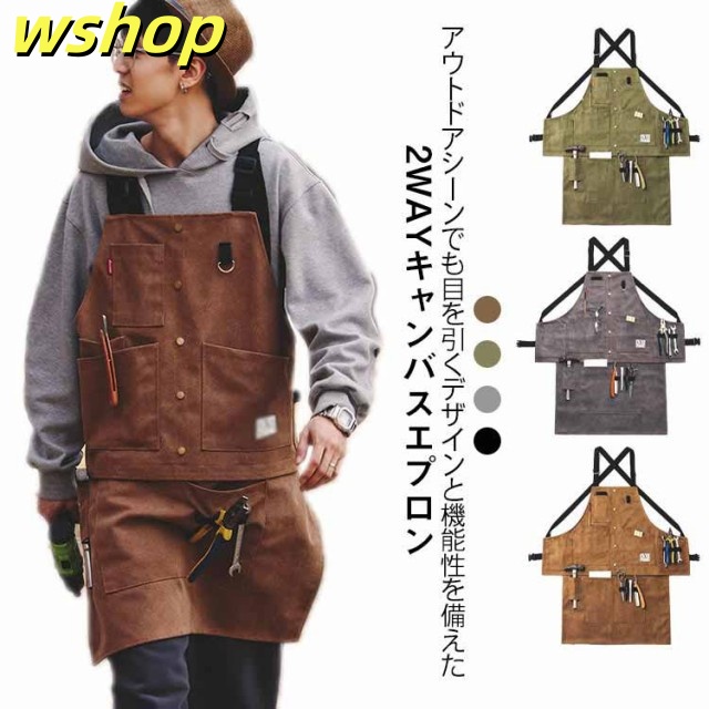 家中時間充実化 品質安心 ガーデニング 【wshop キャンバス 調理 男女兼用 新登場 ワークエプロン 】キャンプ レジャー DIY 選べる2タイプ BBQ 2way アウトドアエプロン レビュー高評価 メンズ 今だけ 作業 おしゃれ レディース 焚火 数量限定入荷
