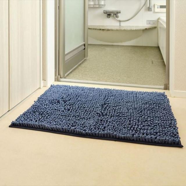 バスマット 50x70cm 超吸水マイクロファイバーモール SUSU 抗菌ストロングW バスマット ネイビー Lサイズ