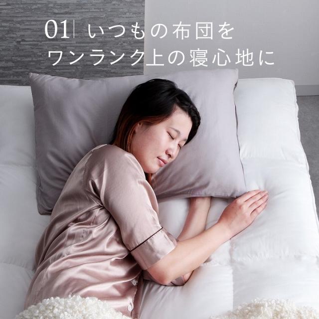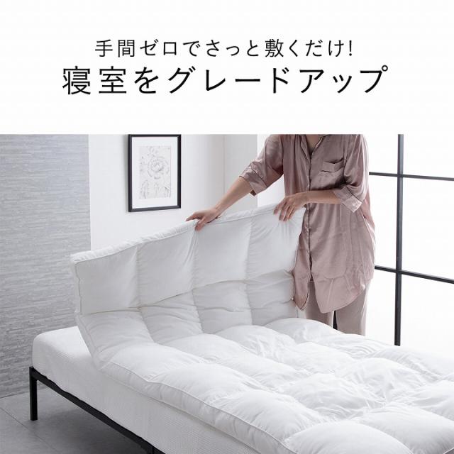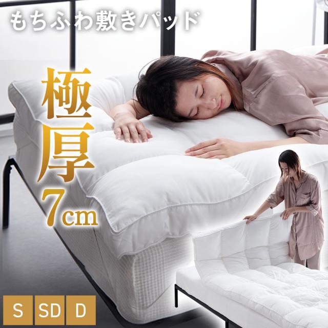 | \クラウドファンディングサイト「Makuake(マクアケ)」にて目標総額500%を達成した極厚敷パッドが登場!/ ■【敷くだけホテル気分】もちふわ感触に包まれながらとろける眠りをお届けします。 ■さっと敷くだけで寝室をグレードアップ。一般的な敷きパッドと比べて、圧倒的なボリューム感で体を包み込みます。 |