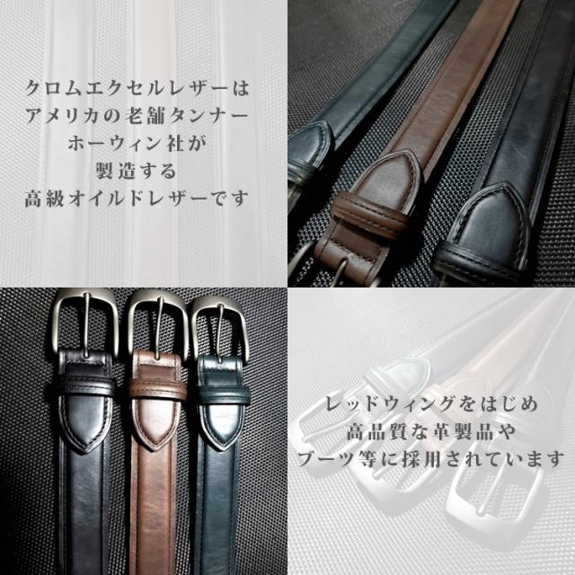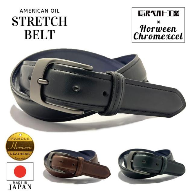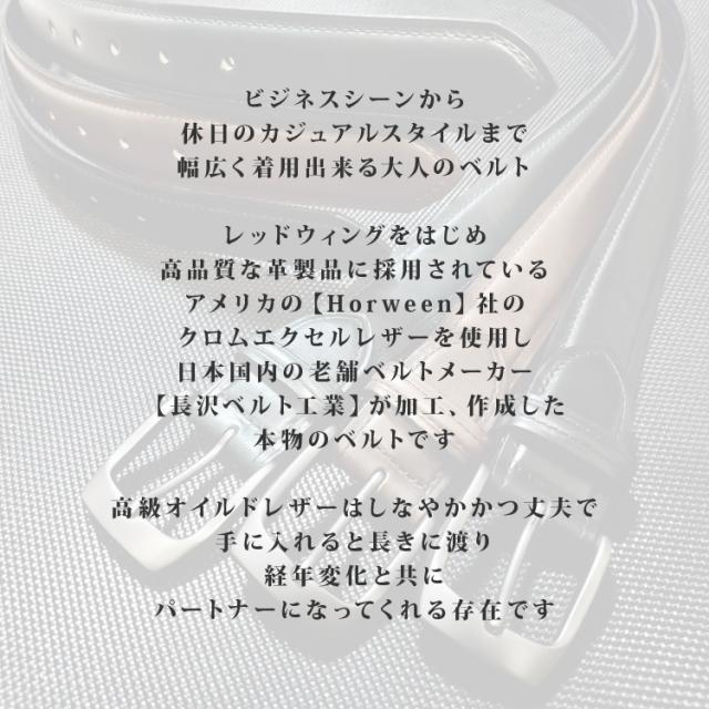 長沢ベルト ホーウィン社 クロムエクセルレザー 伸びるベルト レザーベルト アメリカ製革 日本製 ベルト ビジネス 本革 牛革 シンプル フォーマル スーツ nkb-006