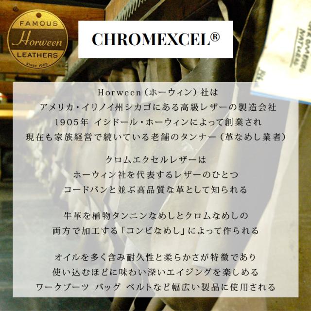 レッドウィングをはじめ、高品質な革製品に採用されているアメリカの【Horween】社のクロムエクセルレザーを使用し、