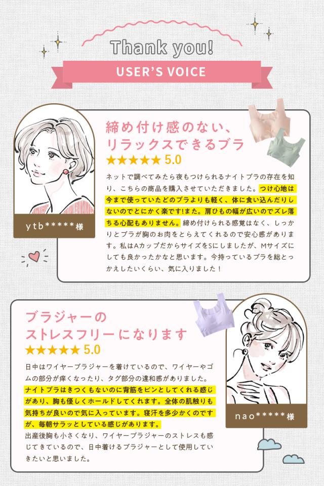とっても楽で、バストへの負担も減り、血液循環もよくなり、昼と夜を問わず24時間フルに活躍できます。