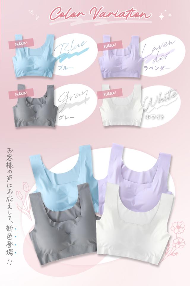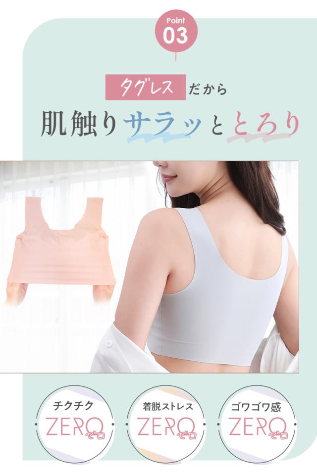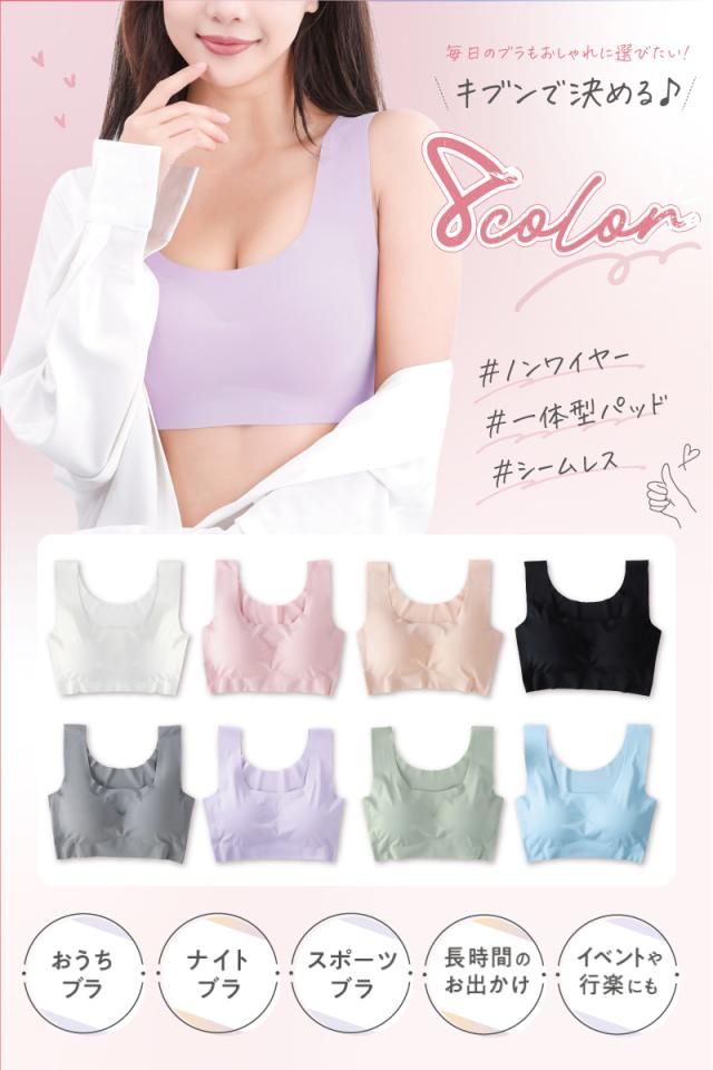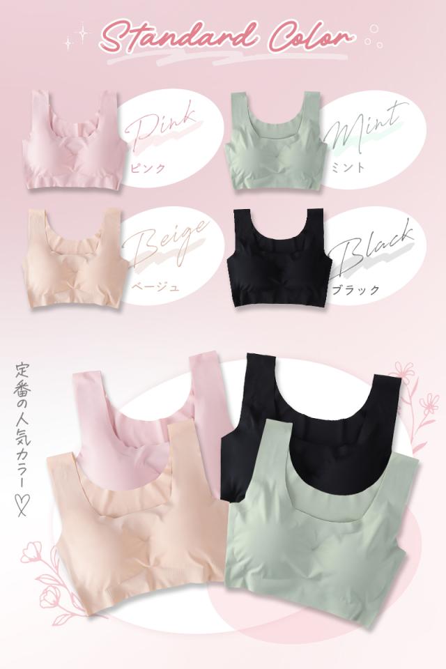 キャミソールやタンクトップの下にも使いやすいふんわりシームレスタイプ。