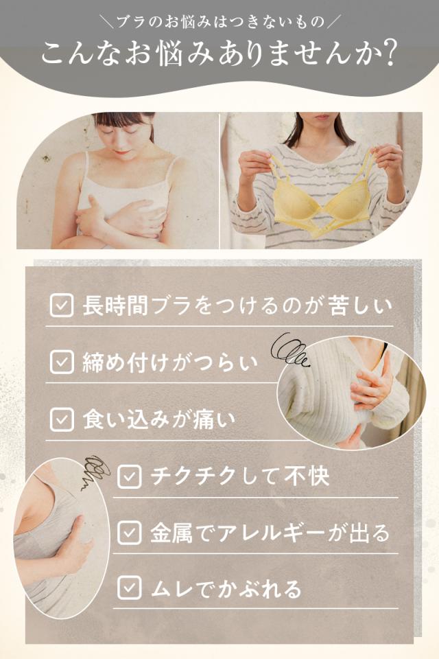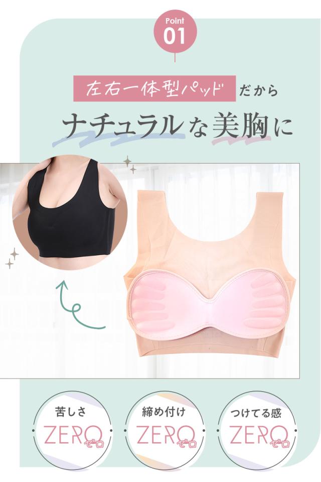 横になっても胸が逃げにくいので睡眠時の着用に最適です。