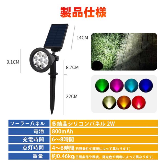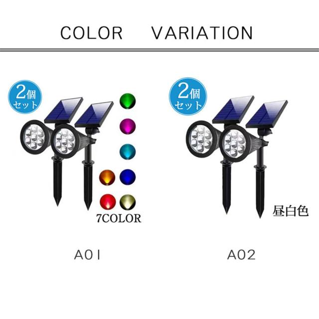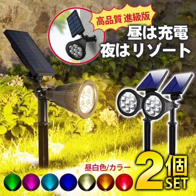 ソーラーライト 2個セット 屋外 室外 昼白色 カラー 埋め込み式 壁掛け式 ガーデンライト 太陽光充電 自動点灯 LED 門灯