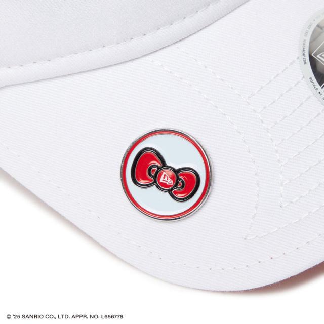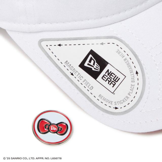 ハローキティのアイコンでもあるリボンとニューエラのフラッグロゴを組み合わせたオリジナルデザインのボールマーカー付き。