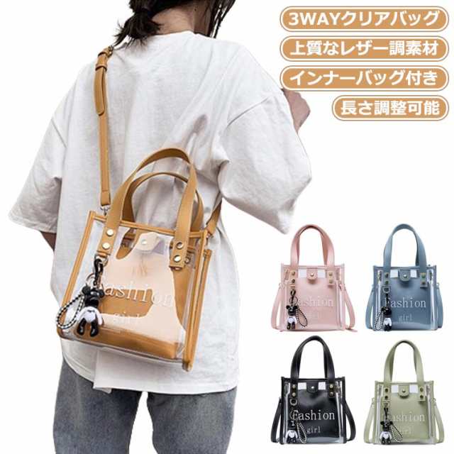 クリアバッグ ショルダーバッグ 送料無料 透明バッグ 斜めがけバッグ 3way トート ハンドバッグ 痛バ プールバッグ 肩掛け 斜め掛け カバン 鞄 インナーバッグ付き 防水 ビニールバッグ PUレザー 軽量 旅行 アウトドア プール 海 送料無料