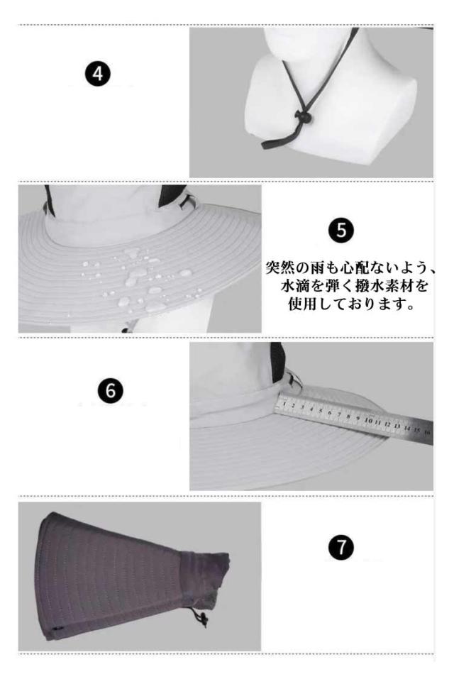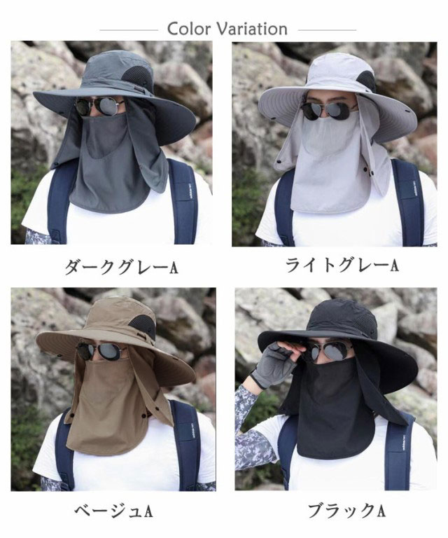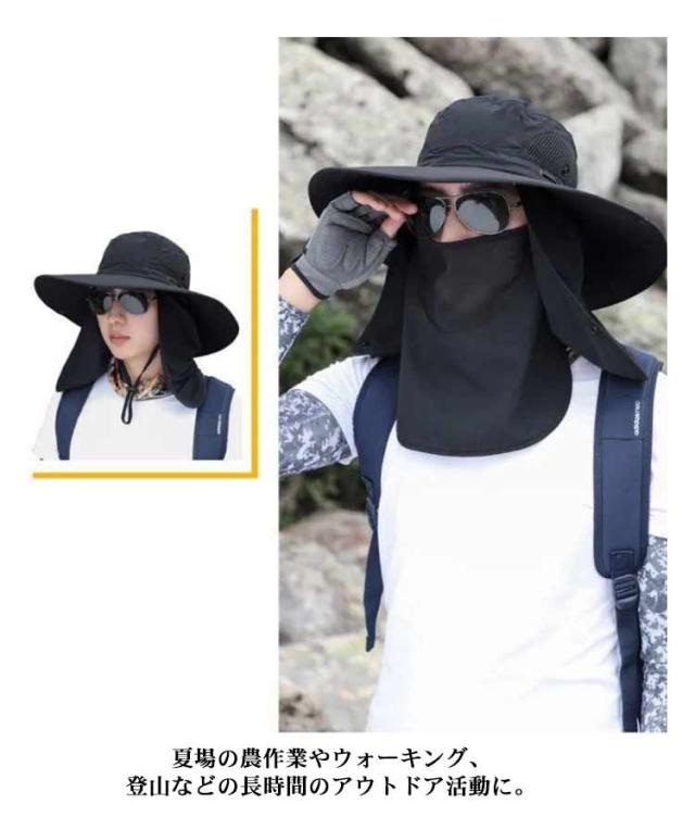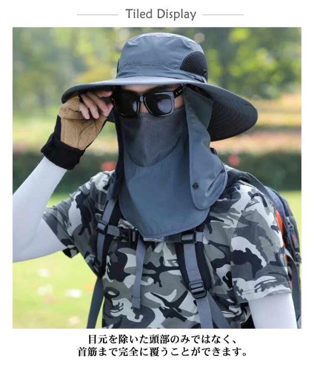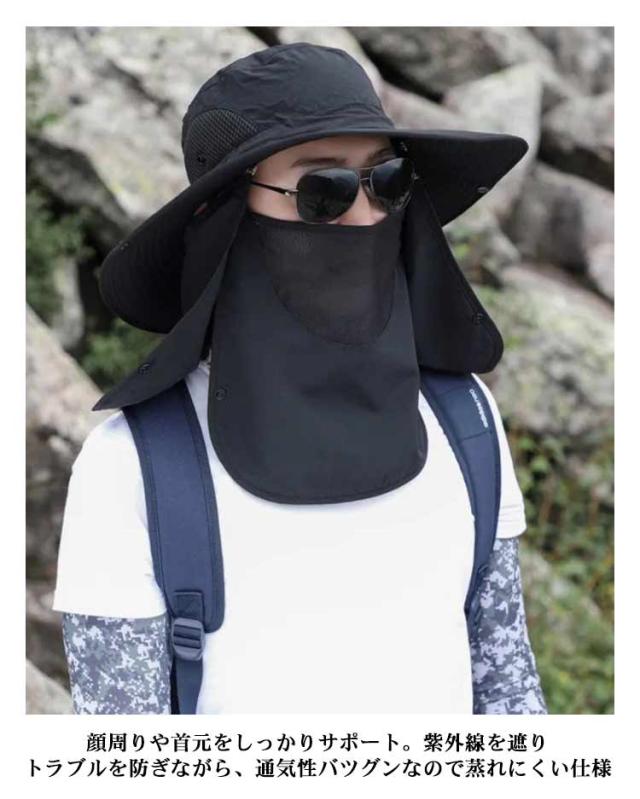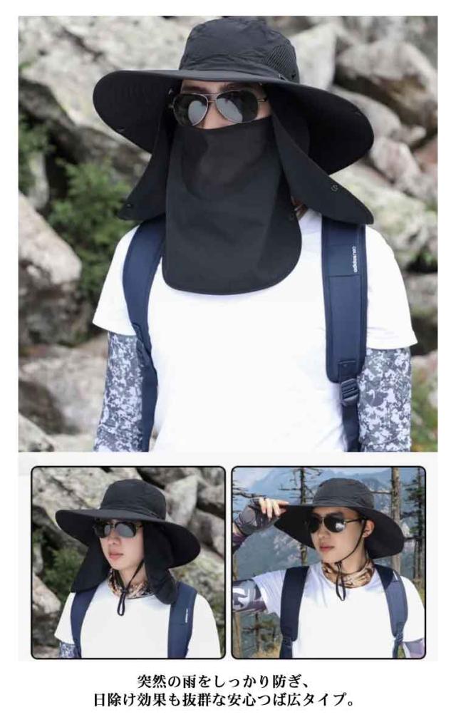 | 首までガード、完全防備のUVカット・紫外線対策用日よけ帽子。 目元を除いた頭部のみではなく、首筋まで完全に覆うことができます。 突然の雨をしっかり防ぎ、日除け効果も抜群な安心つば広タイプ。 顔周りや首元をしっかりサポート。紫外線を遮りトラブルを防ぎながら、通気性バツグンなので蒸れにくい仕様 夏場の農作業やウォーキング、登山などの長時間のアウトドア活動に。 突然の雨も心配ないよう、水滴を弾く撥水素材を使用しております。 アウトドア、キャンプ、登山、野外フェスにスポーツ観戦、サバゲーなど幅広い野外アクティビティで活躍します。 | |
