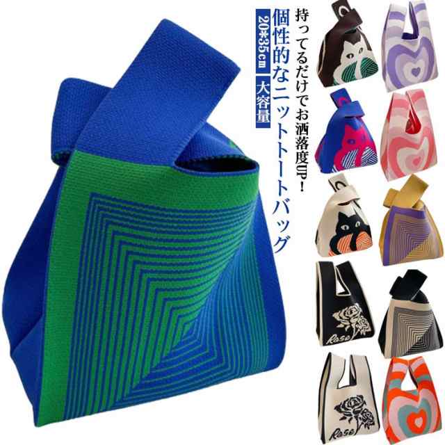 | 持ってるだけでお洒落度UP!個性的なニットトートバッグ 柔らかで伸びの良いニットだから見た目以上にたくさん収納できます。 小ぶりなバッグですが、お財布やスマホなどしゅうのうでき、お出かけにピッタリのサイズ感♪ 幅広いコーデに合い、お洒落な柄がコーデのアクセントとなり、こなれ感を演出してくれます。 | |