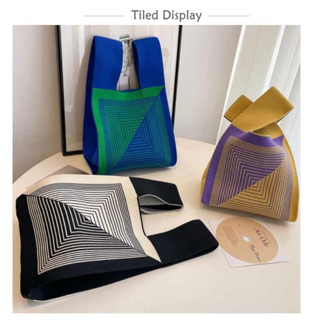 ミニ トートバッグ ハンドバッグ レディース サマーニット ニットバッグ 可愛い 北欧 大容量 ミニバッグ 秋冬 オールシーズン ミニトートバッグ トートバッグ 編みバッグ ニット エコバッグ ストライプ ジオメトリー 幾何学模様 おしゃれ 春夏 ギフト プレゼント 送料無料
