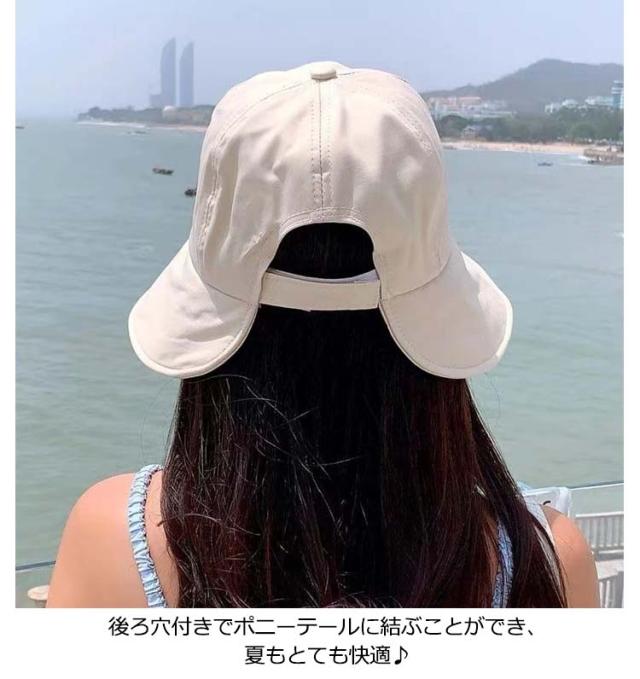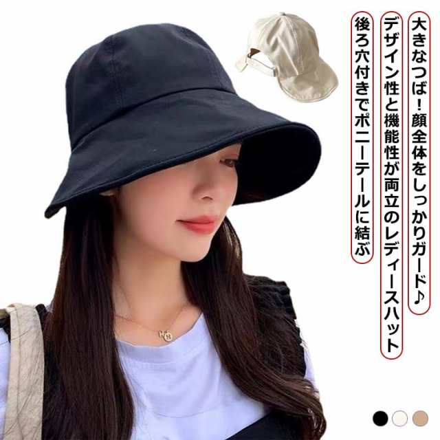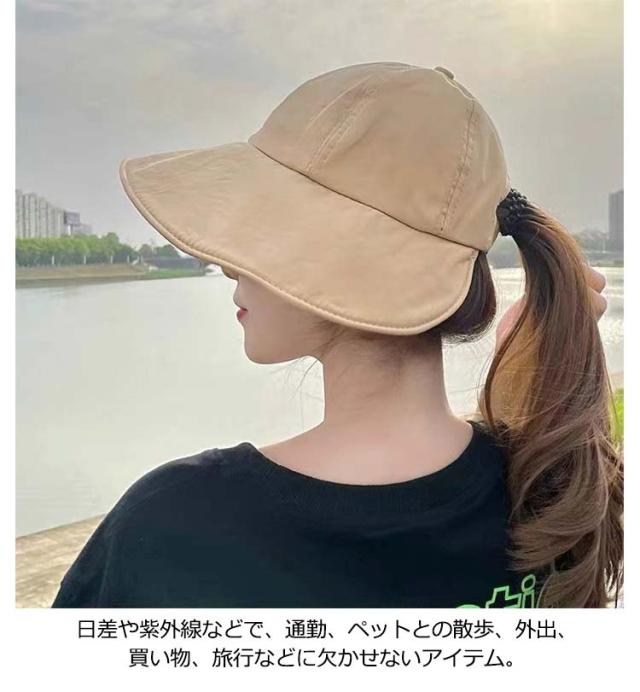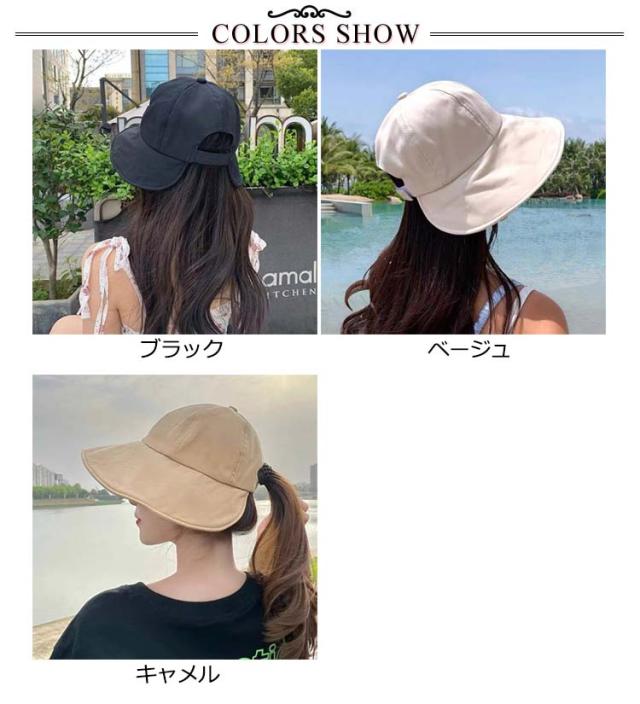 大きなつば キャップ 帽子 ポニーテール穴付き ハット バケットハット レディース 日よけ吸汗 速乾 大きいサイズ 軽量 折りたたみ 可能 春夏 送料無料 無地 お出かけ 通勤 紫外線対策 韓国ファッション ブラック ベージュ キャメル 送料無料