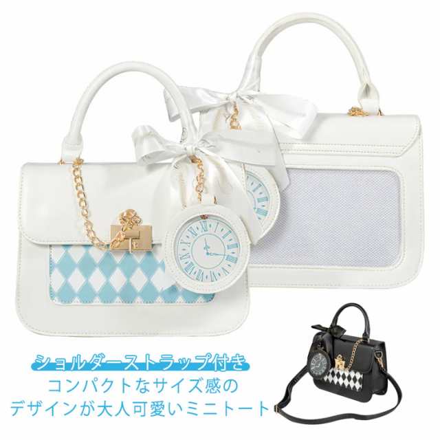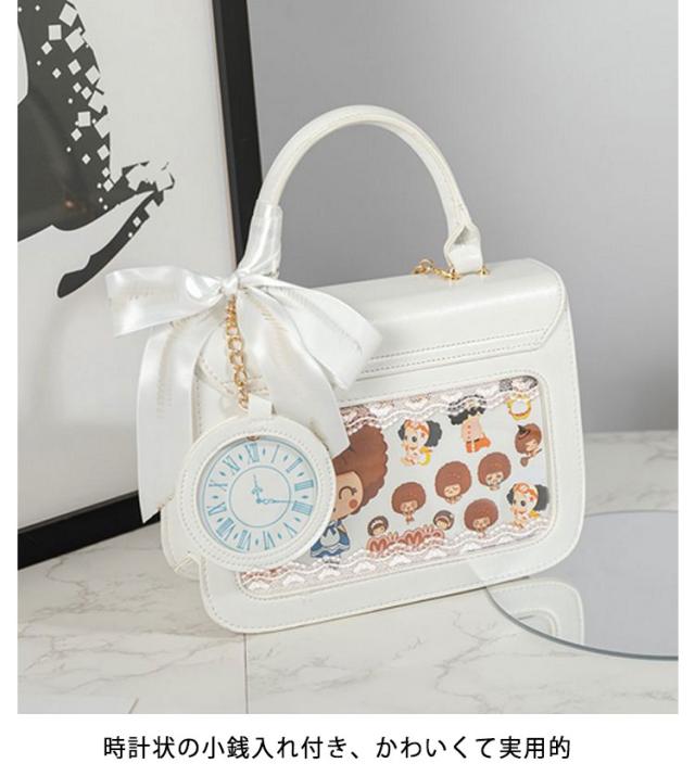 デコバッグ 痛バック リボン付き 痛バック 痛バ 2way ショルダーストラップ付き ショルダーバッグ 痛バッグ ミニ レディース ハート 時計状の小銭入れ 推し活 デコバ トートバッグ トート カバン バッグ おしゃれ かわいい