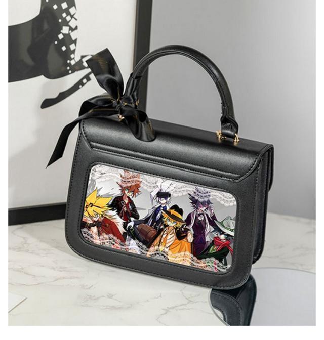| コンパクトなサイズ感のデザインが大人可愛いミニトート 時計状の小銭入れ付き、かわいくて実用的 トートバッグとショルダーバッグの2way仕様なので荷物の多さや気分に合わせて使い分けることが可能です。 ショルダーストラップがセットになっているので物販イベントなどで 荷物が増えた時もななめ掛けに出来て両手が空くのが嬉しい。 ショルダー部分の金具部分にアクキーやラバストを付けることも可能です リボンと金具の装飾はバッグの可愛さをプラス 缶バッチがつけやすい。 | |